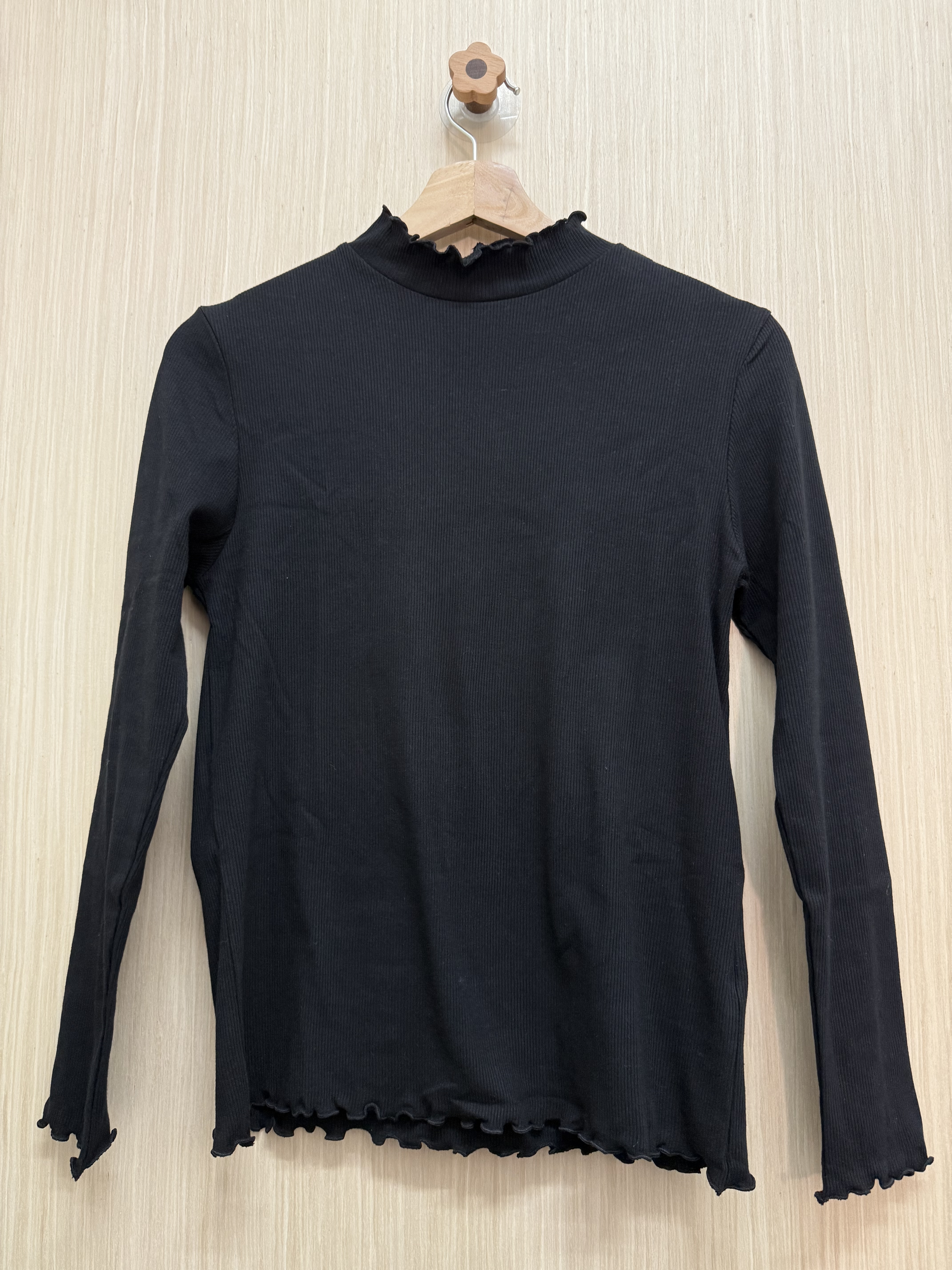 🔖 【坑紋料木耳領內搭】 ✦顏色:黑色 ✦𝐒𝐢𝐳𝐞:肩闊𝟑𝟖𝐜𝐦 袖長𝟓𝟒𝐜𝐦 胸圍𝟑𝟔“吋 衣長𝟔𝟎𝐜𝐦