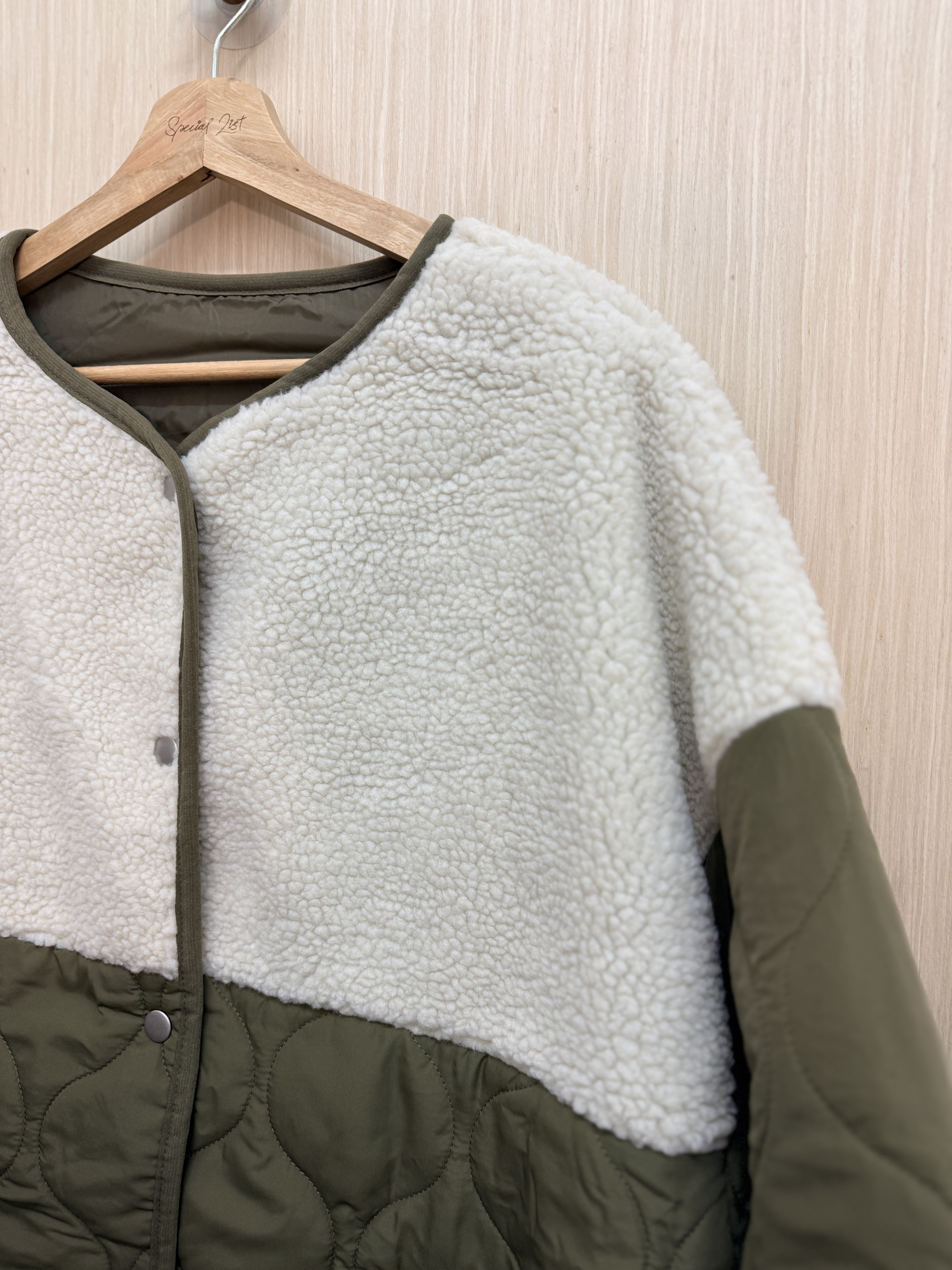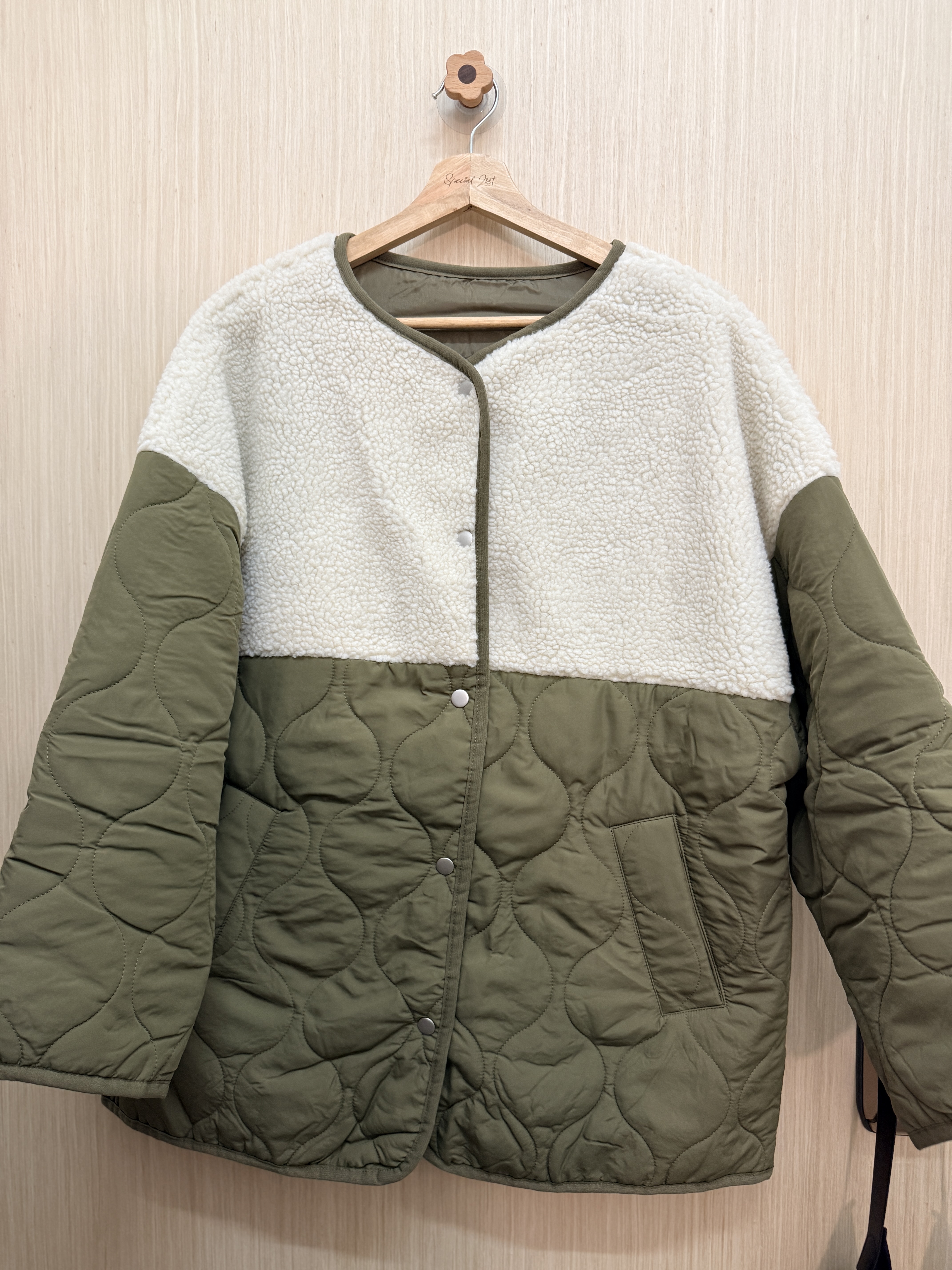 夾棉拼搖粒絨外套(橄欖綠𝐱米白)