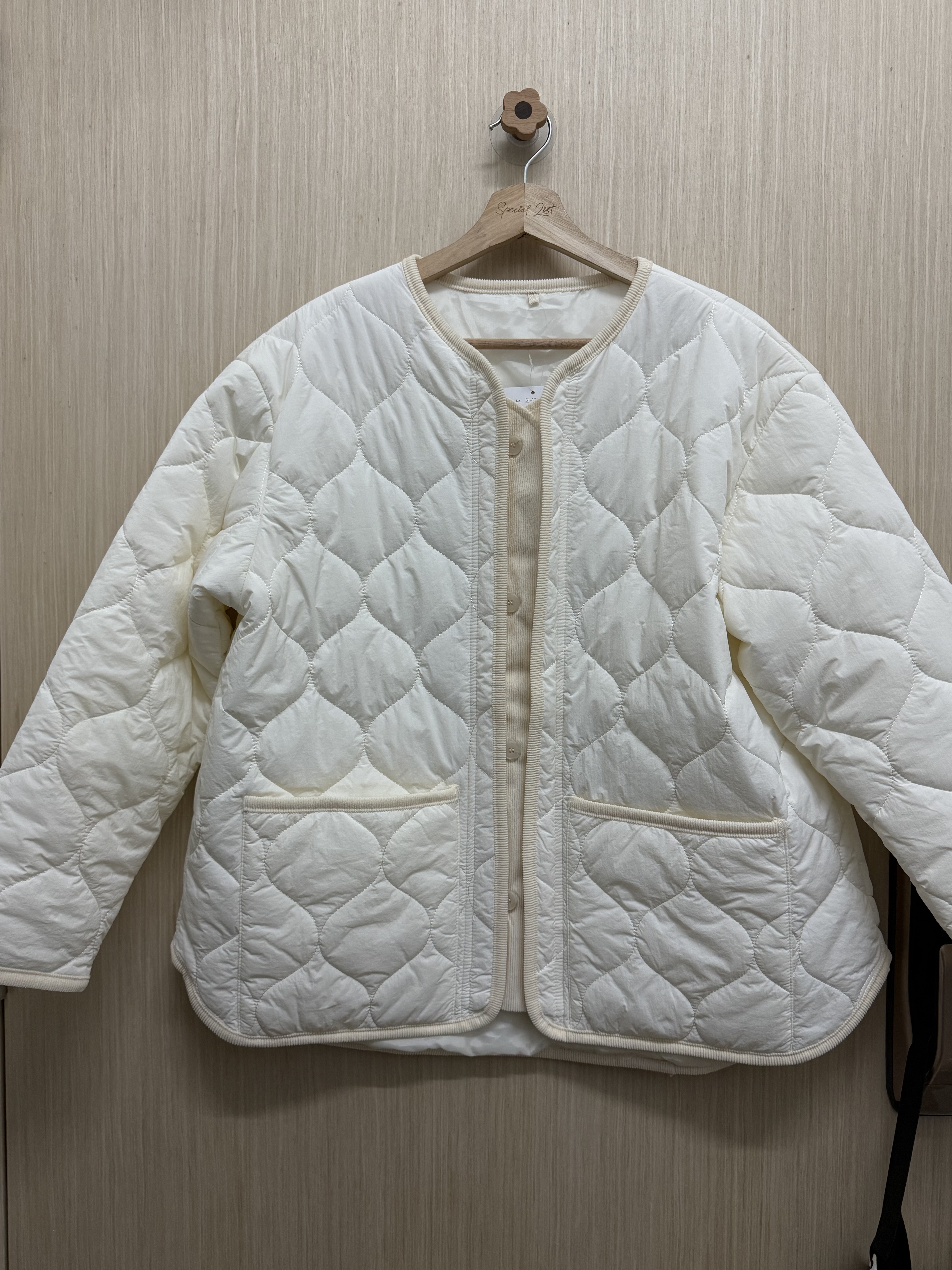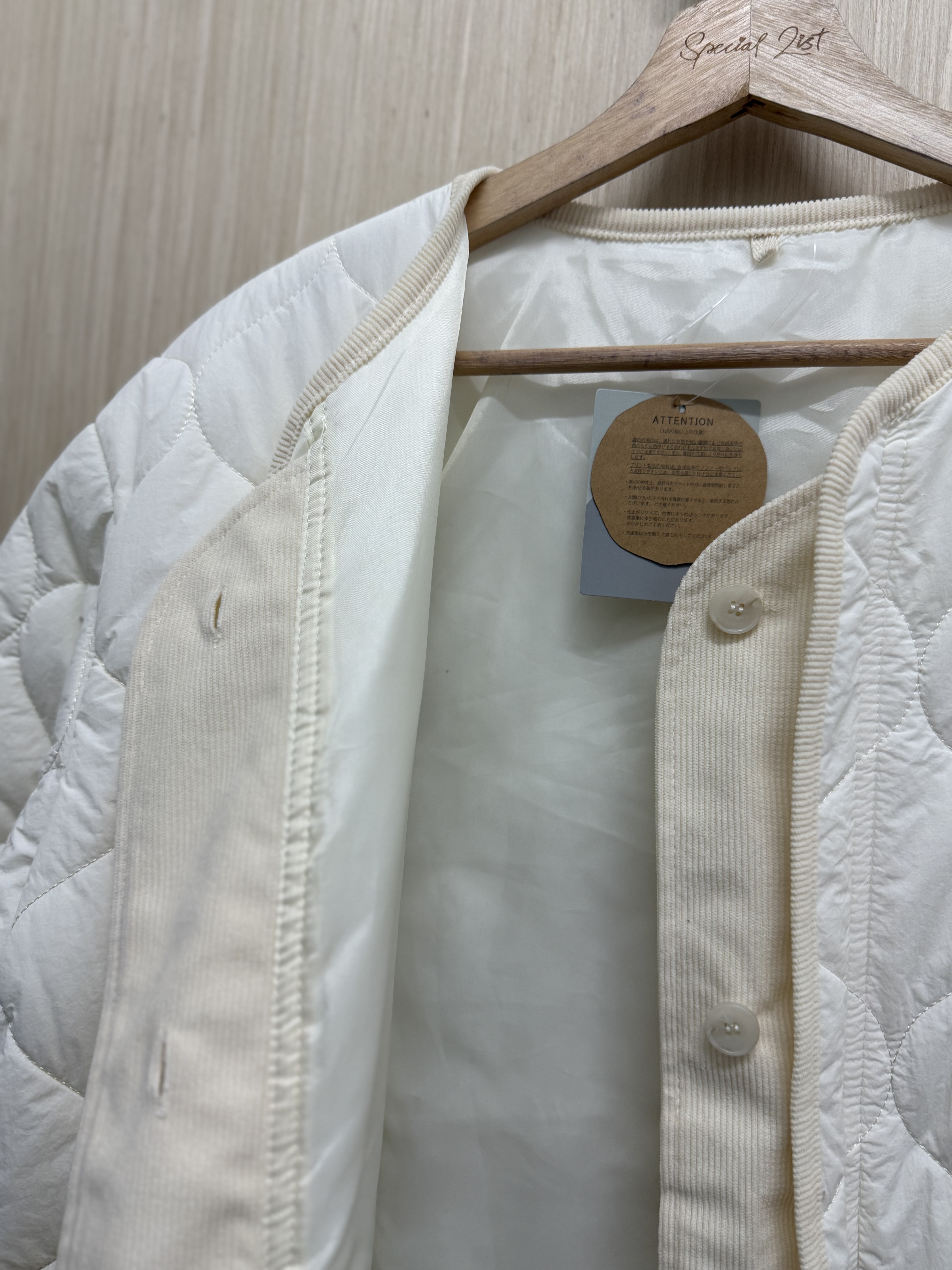 🔖 【夾棉拼燈芯絨外套】 ✦顏色:米白色 ✦𝐒𝐢𝐳𝐞:肩闊𝟓𝟎𝐜𝐦 胸圍𝟒𝟖“吋 袖長𝟓𝟓𝐜𝐦 衣長𝟕𝟐𝐜𝐦
