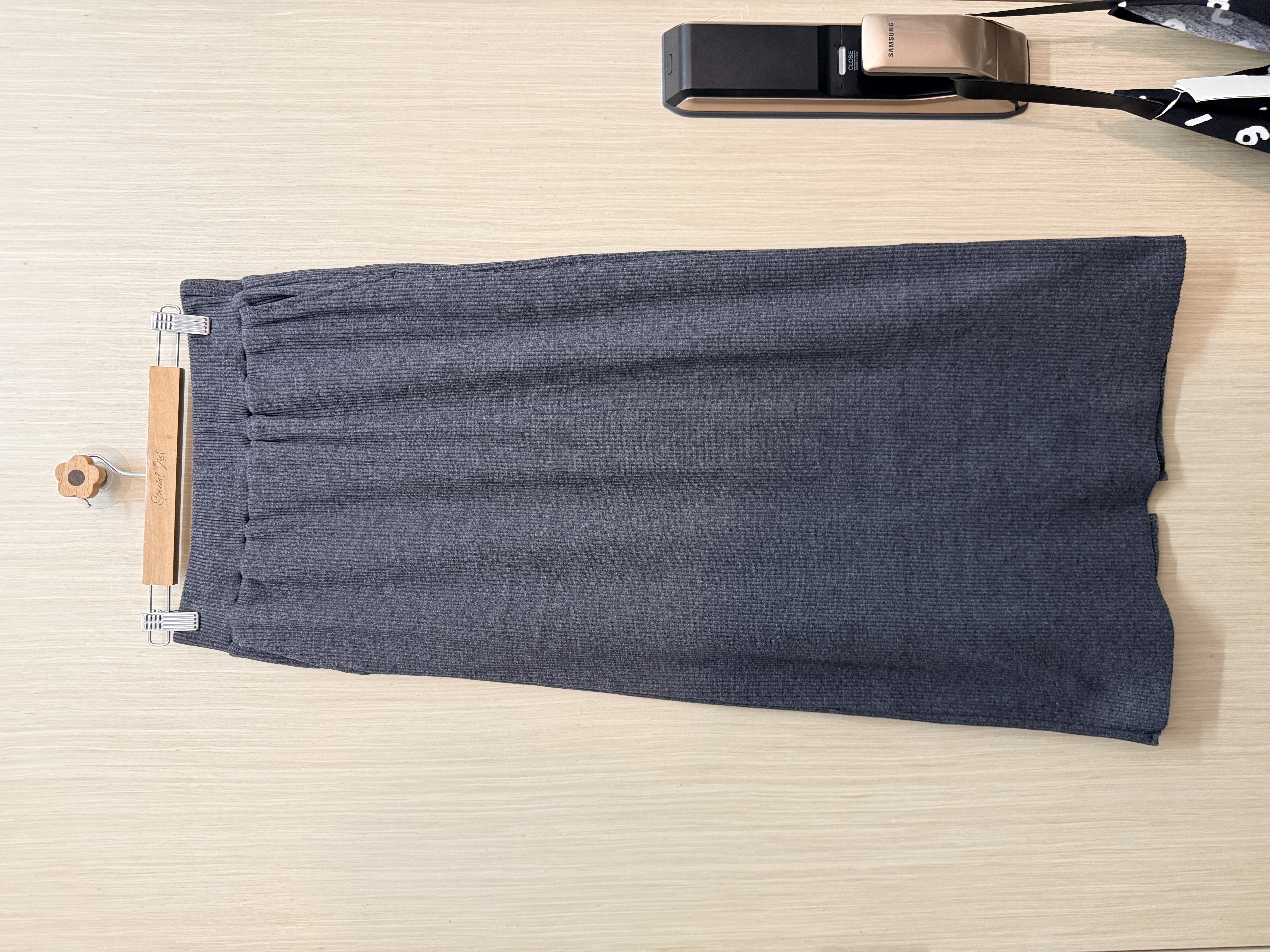 🔖 【彈性羅紋直身裙】 ✦顏色:炭灰色 ✦𝐒𝐢𝐳𝐞:全橡筋腰圍、有束腰帶&裙袋.ᐟ.ᐟ腰圍𝟐𝟒-𝟒𝟐″吋 𝐡𝐢𝐩圍𝟒𝟑“吋 裙長𝟗𝟎𝐜𝐦