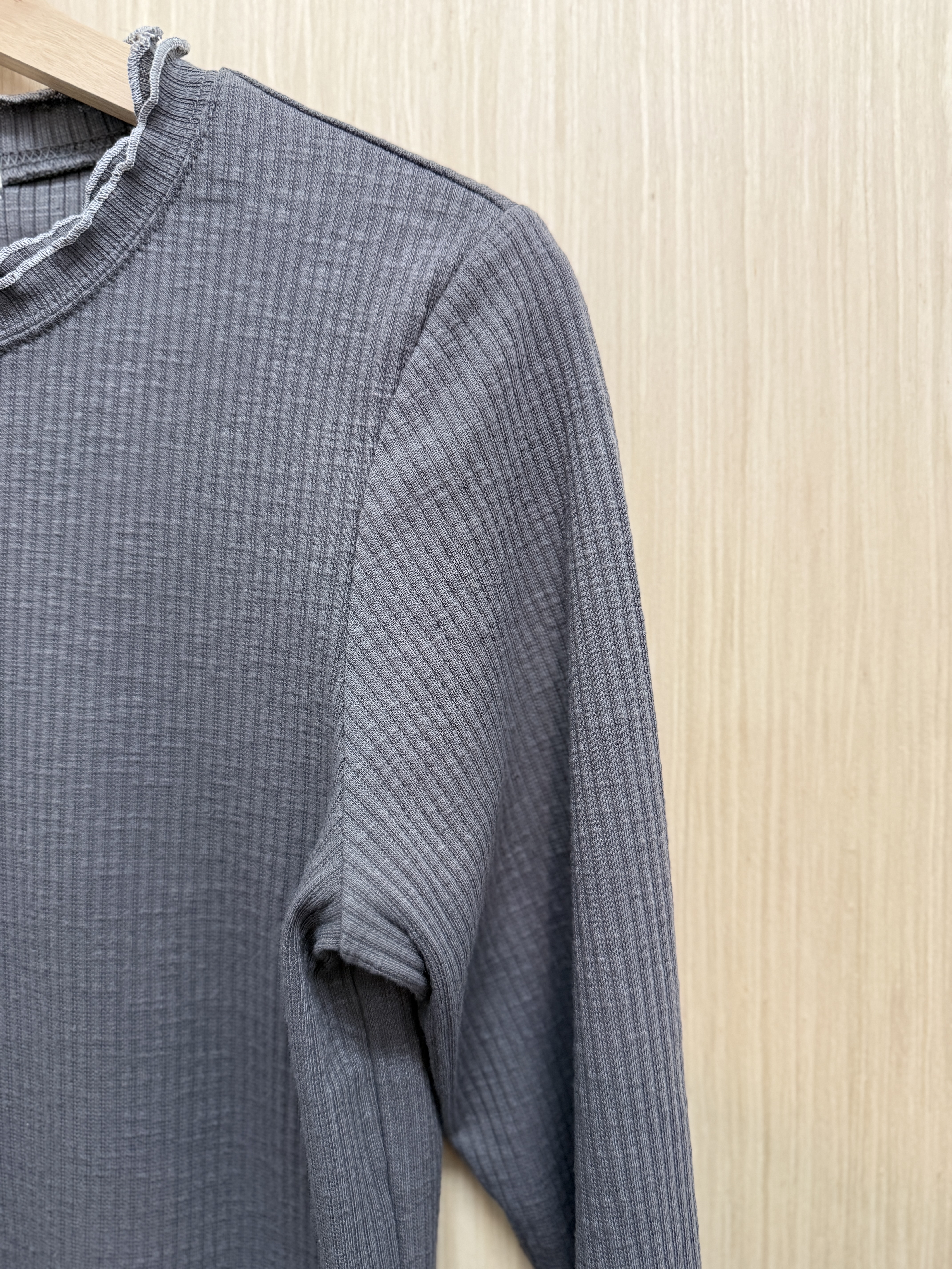撞色邊木耳領𝐭𝐨𝐩(深灰)
