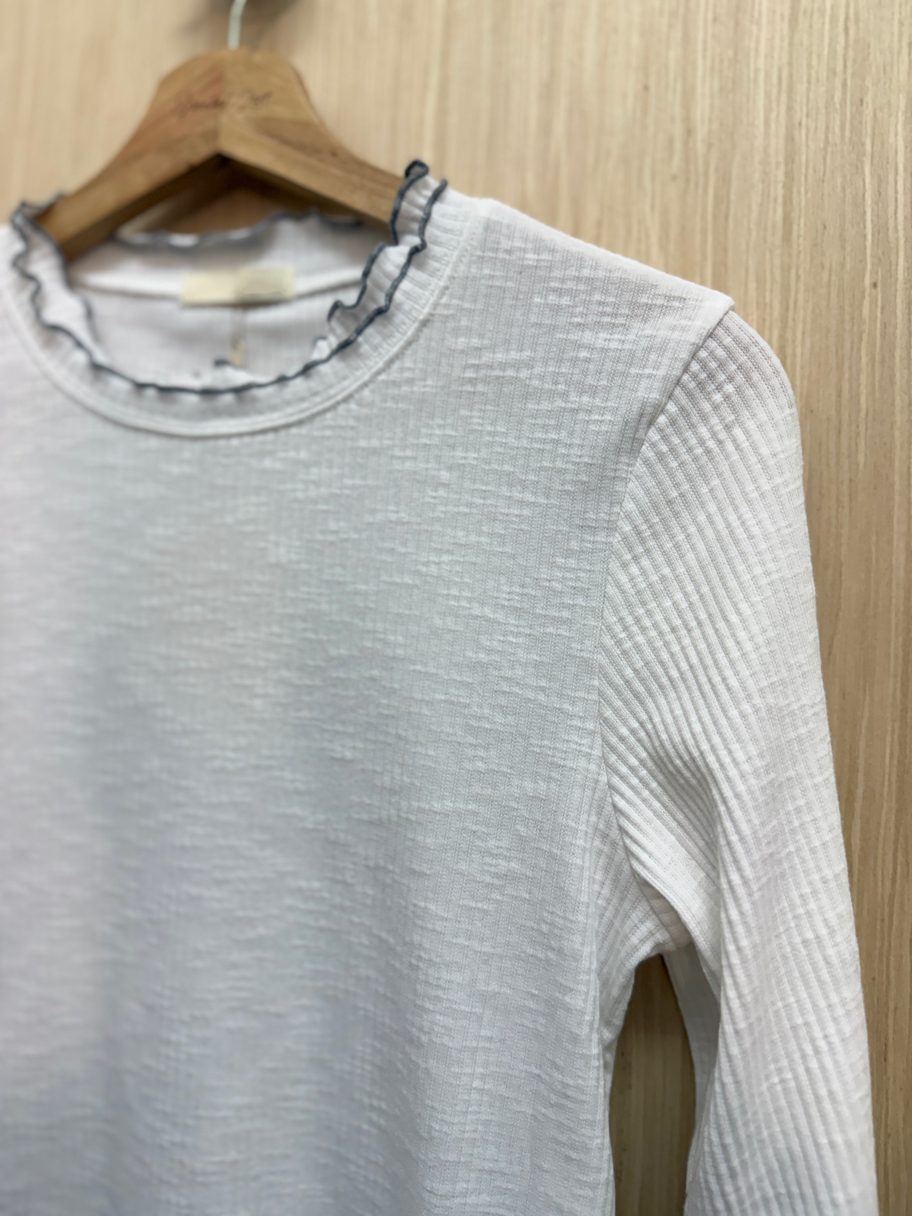 撞色邊木耳領𝐭𝐨𝐩(白色)