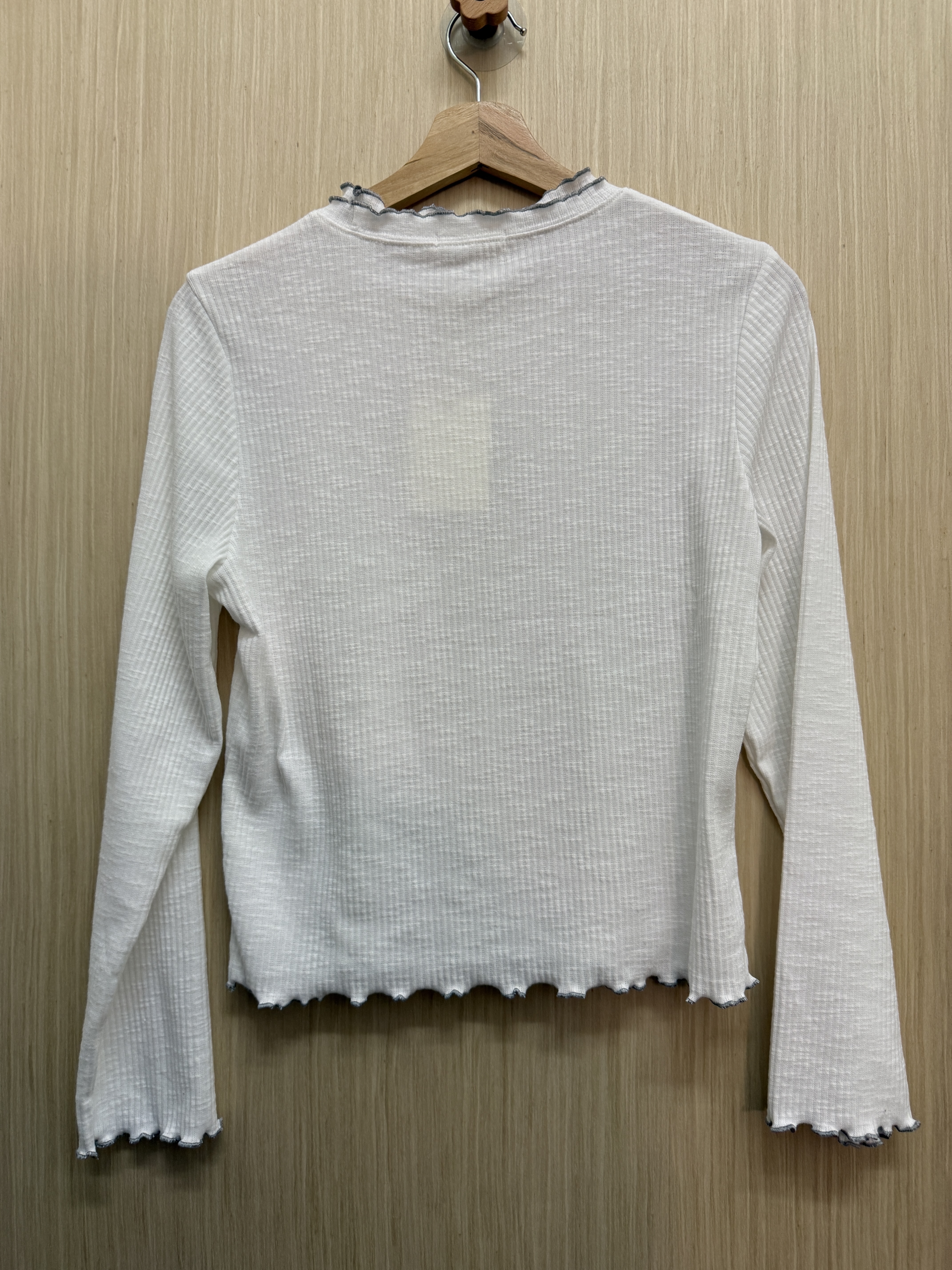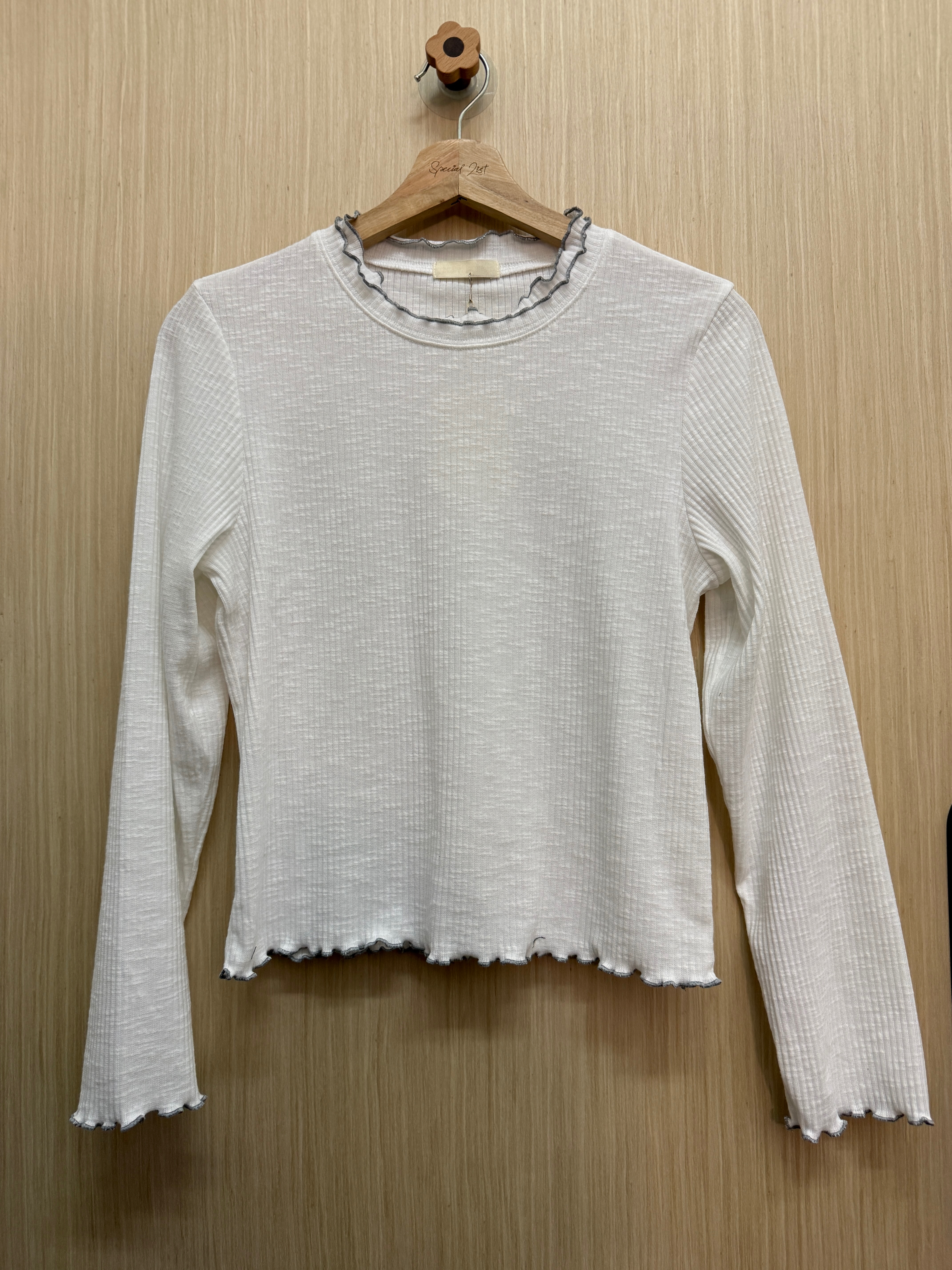 🔖 【撞色邊木耳領𝐭𝐨𝐩】 ✦顏色:白色 ✦𝐒𝐢𝐳𝐞:肩闊𝟑𝟖𝐜𝐦 袖長𝟓𝟔𝐜𝐦 胸圍𝟑𝟗“吋 衣長𝟓𝟐𝐜𝐦