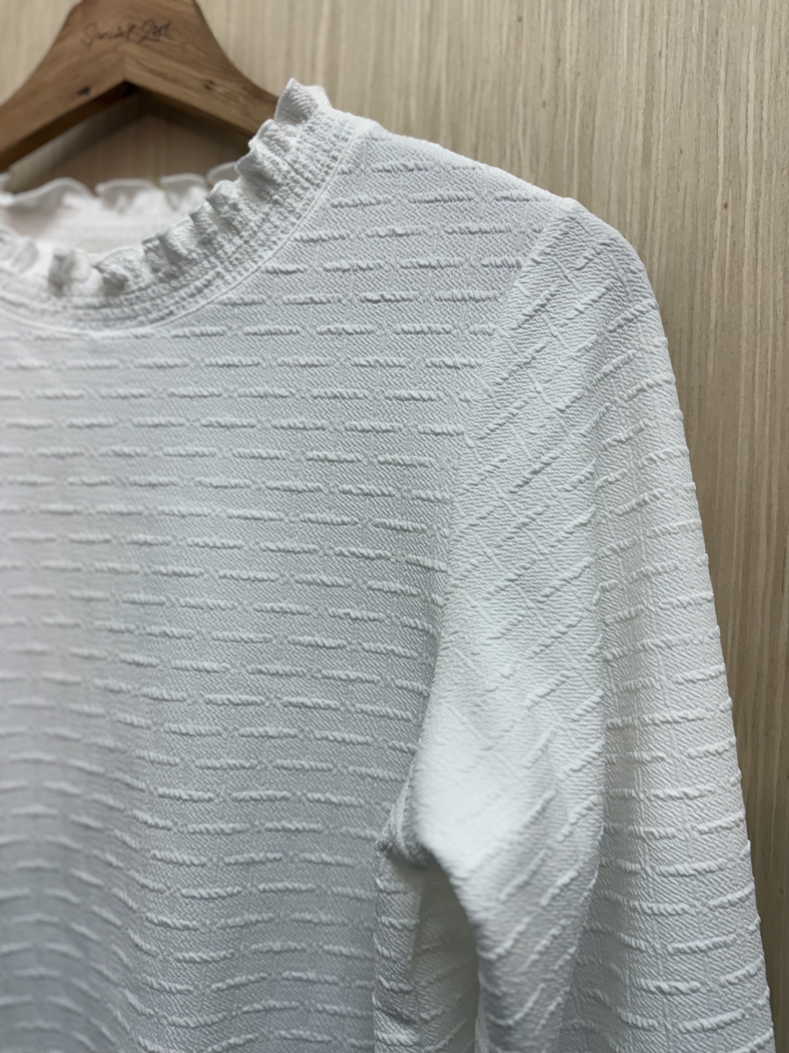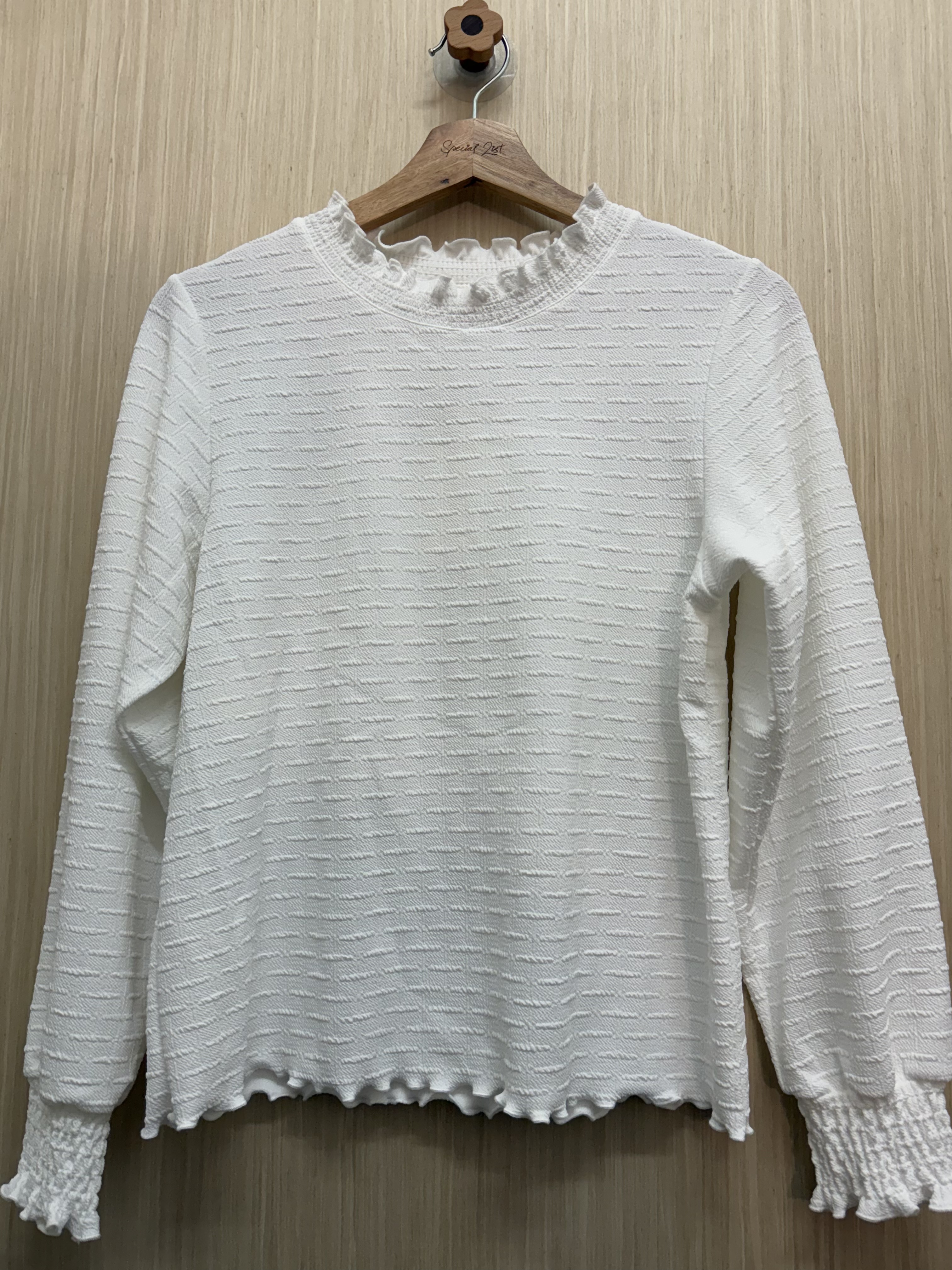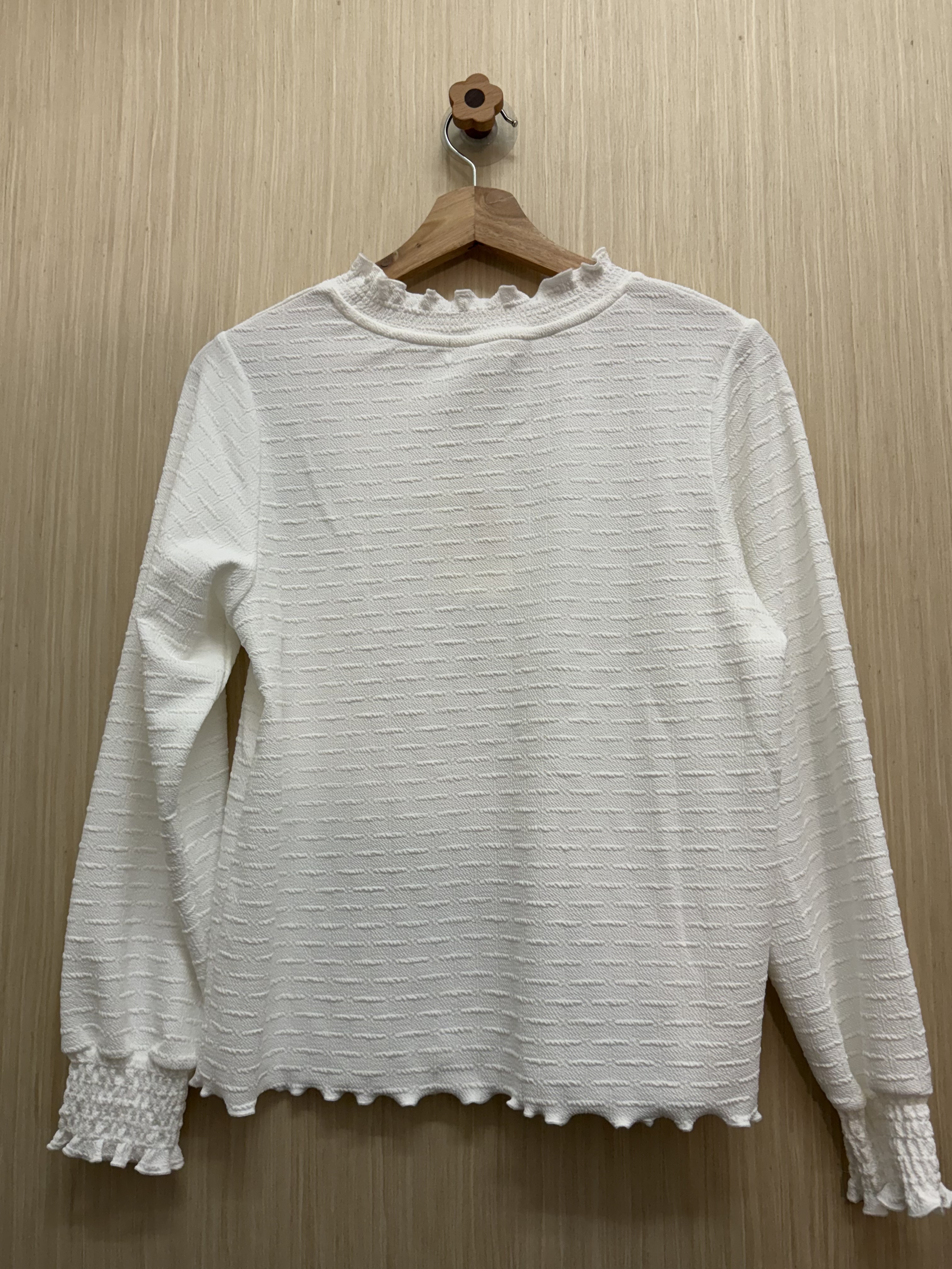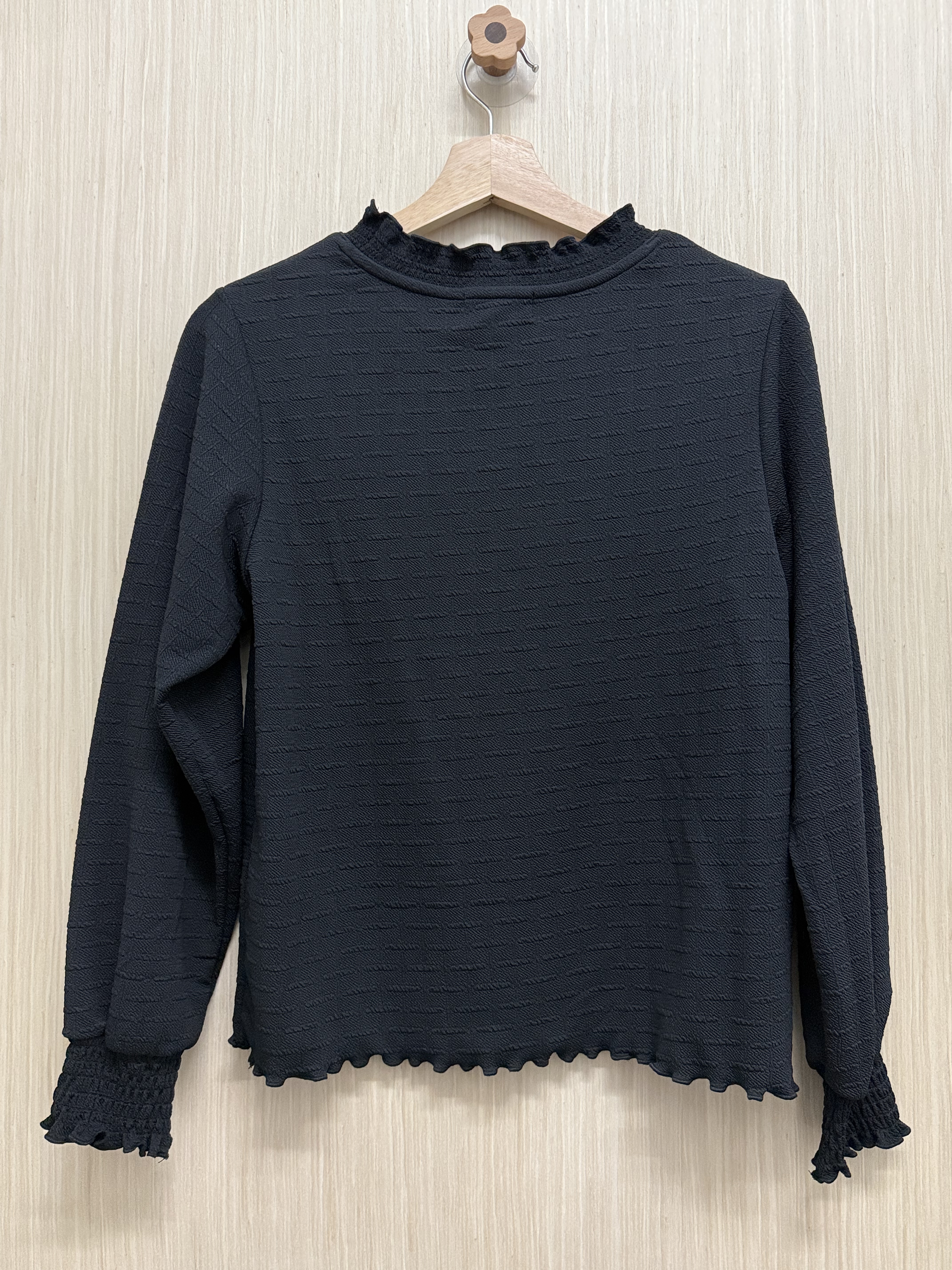 🔖 【橡筋袖木耳領暗紋𝐭𝐨𝐩】 ✦顏色:黑色 / 白色 ✦𝐒𝐢𝐳𝐞:肩闊𝟑𝟖𝐜𝐦 胸圍𝟒𝟐“吋 袖長𝟓𝟖𝐜𝐦 衣長𝟓𝟑𝐜𝐦