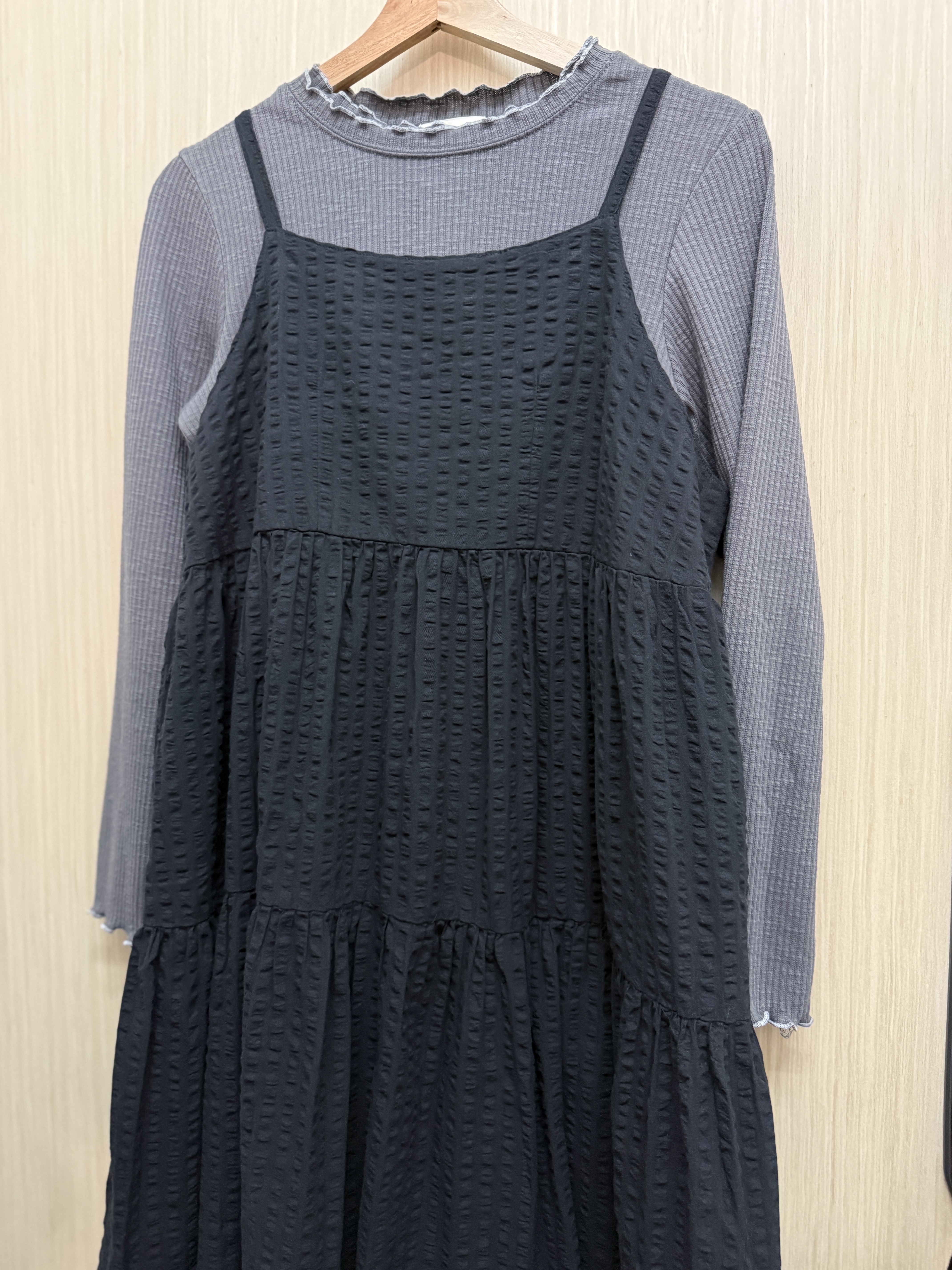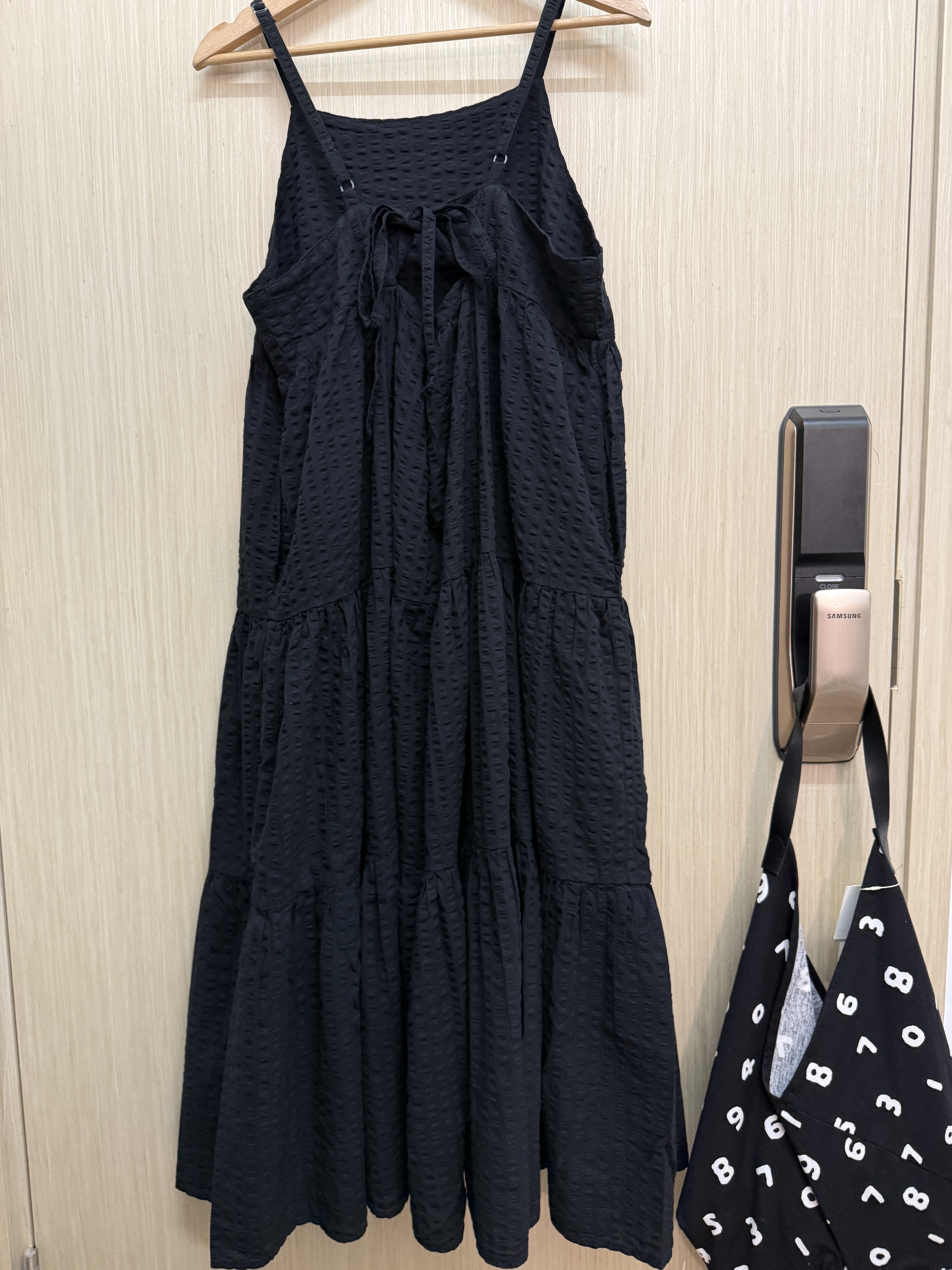 🔖 【泡泡棉後綁帶蛋糕𝐎𝐏𝐒】 ✦顏色:黑色 ✦𝐒𝐢𝐳𝐞:有裙袋.ᐟ.ᐟ 胸圍𝟒𝟏“吋 腰圍𝟓𝟓″吋 可調節裙長𝟏𝟏𝟔𝐜𝐦-𝟏𝟐𝟔𝐜𝐦