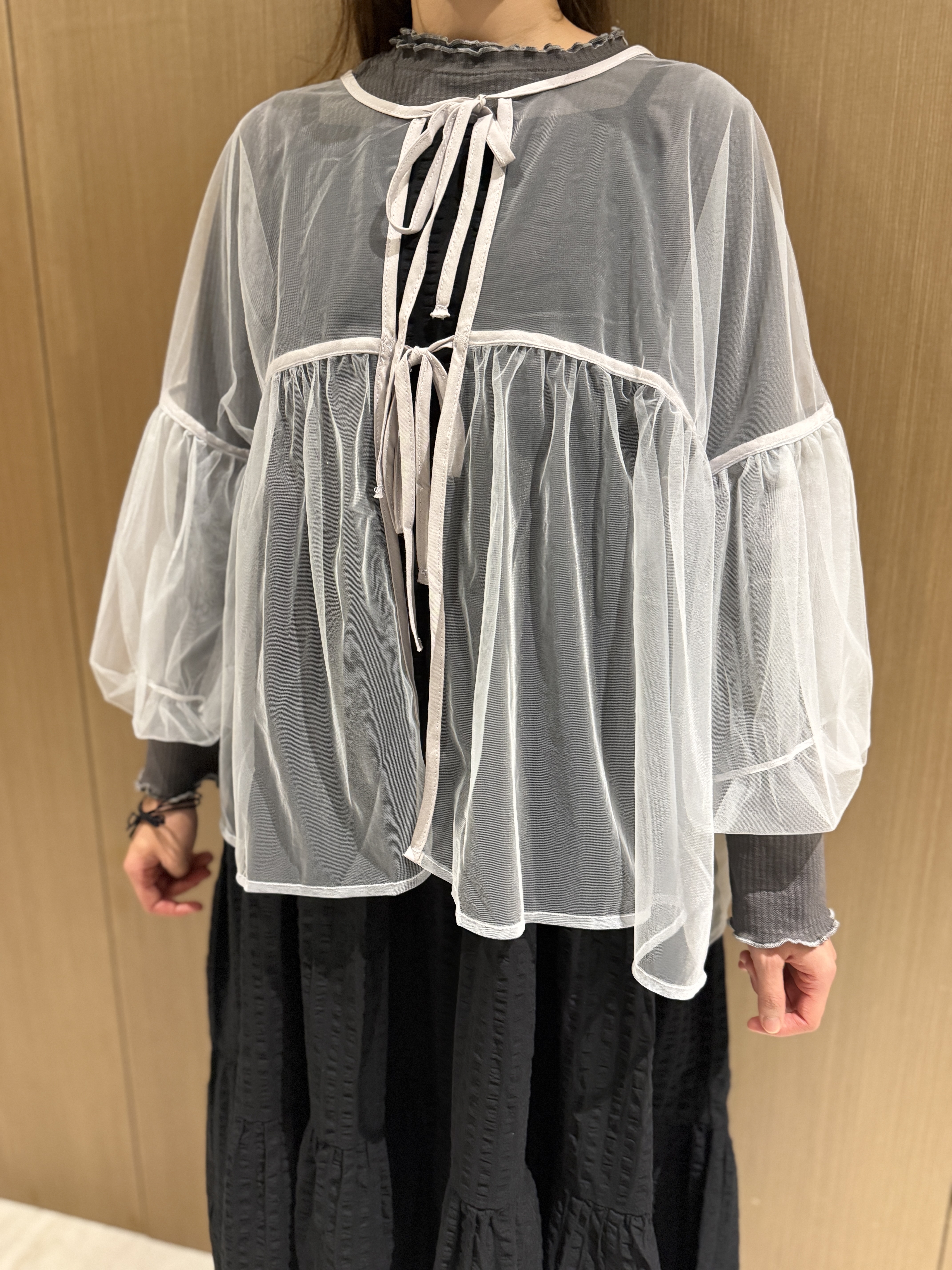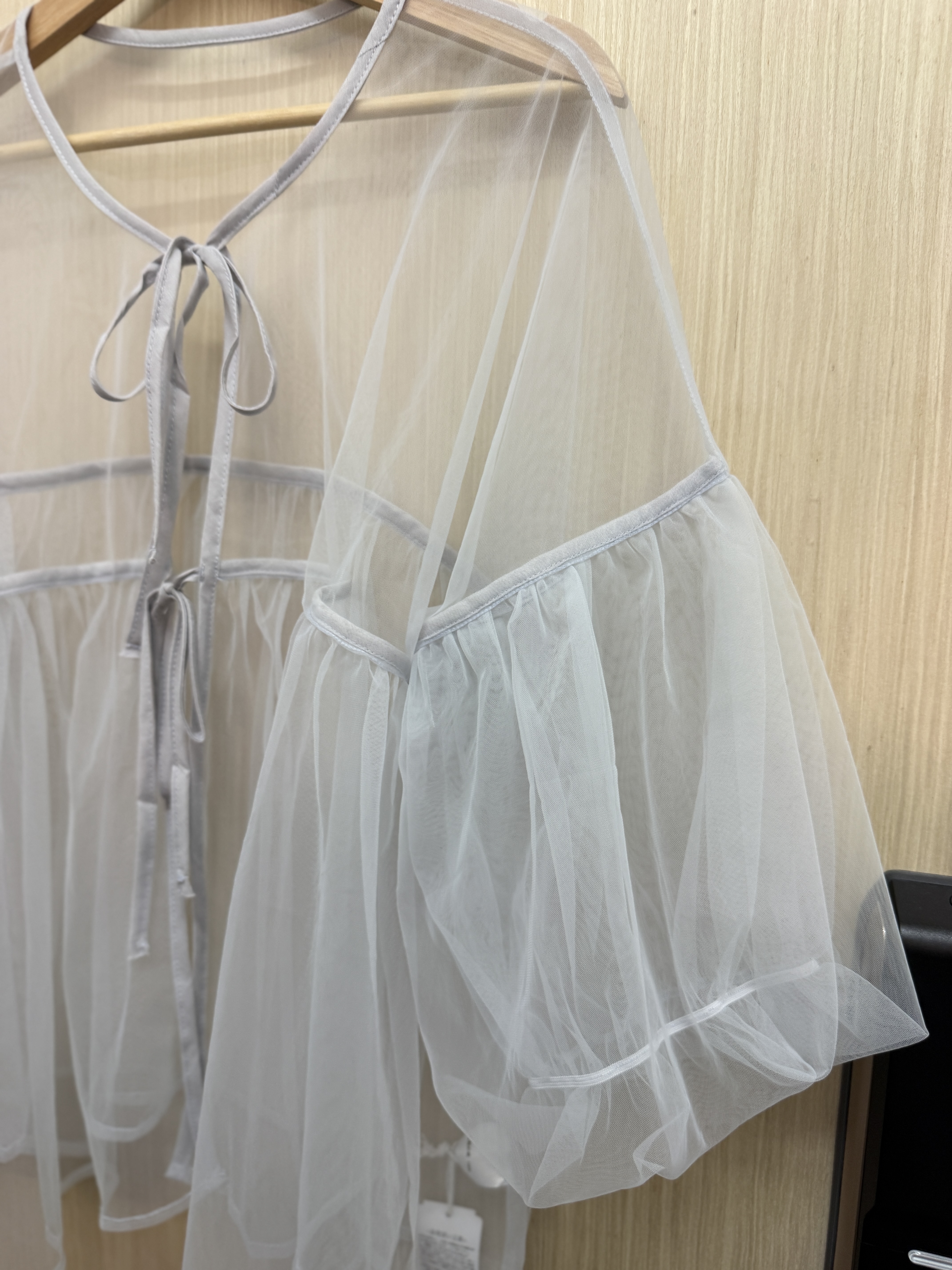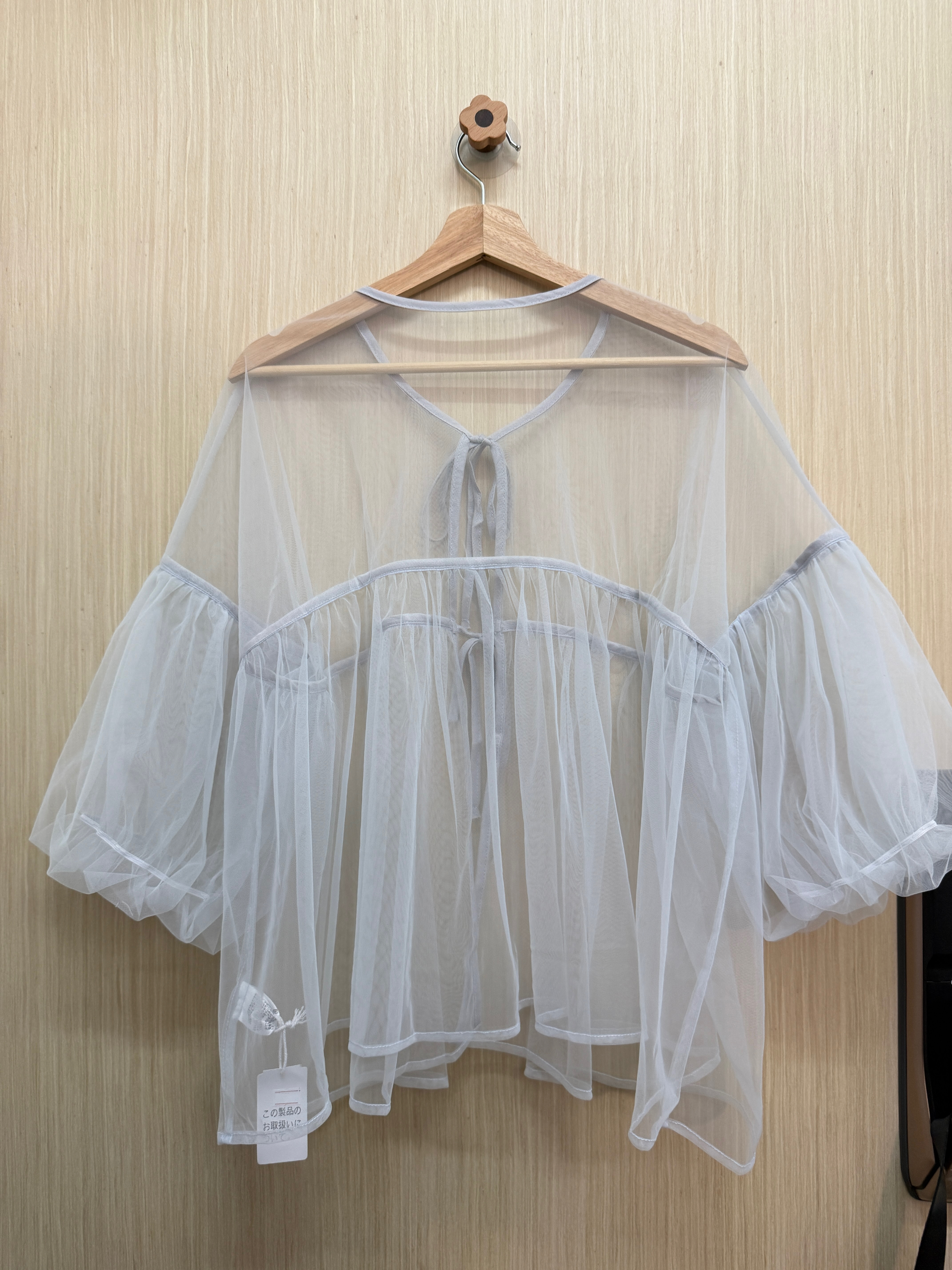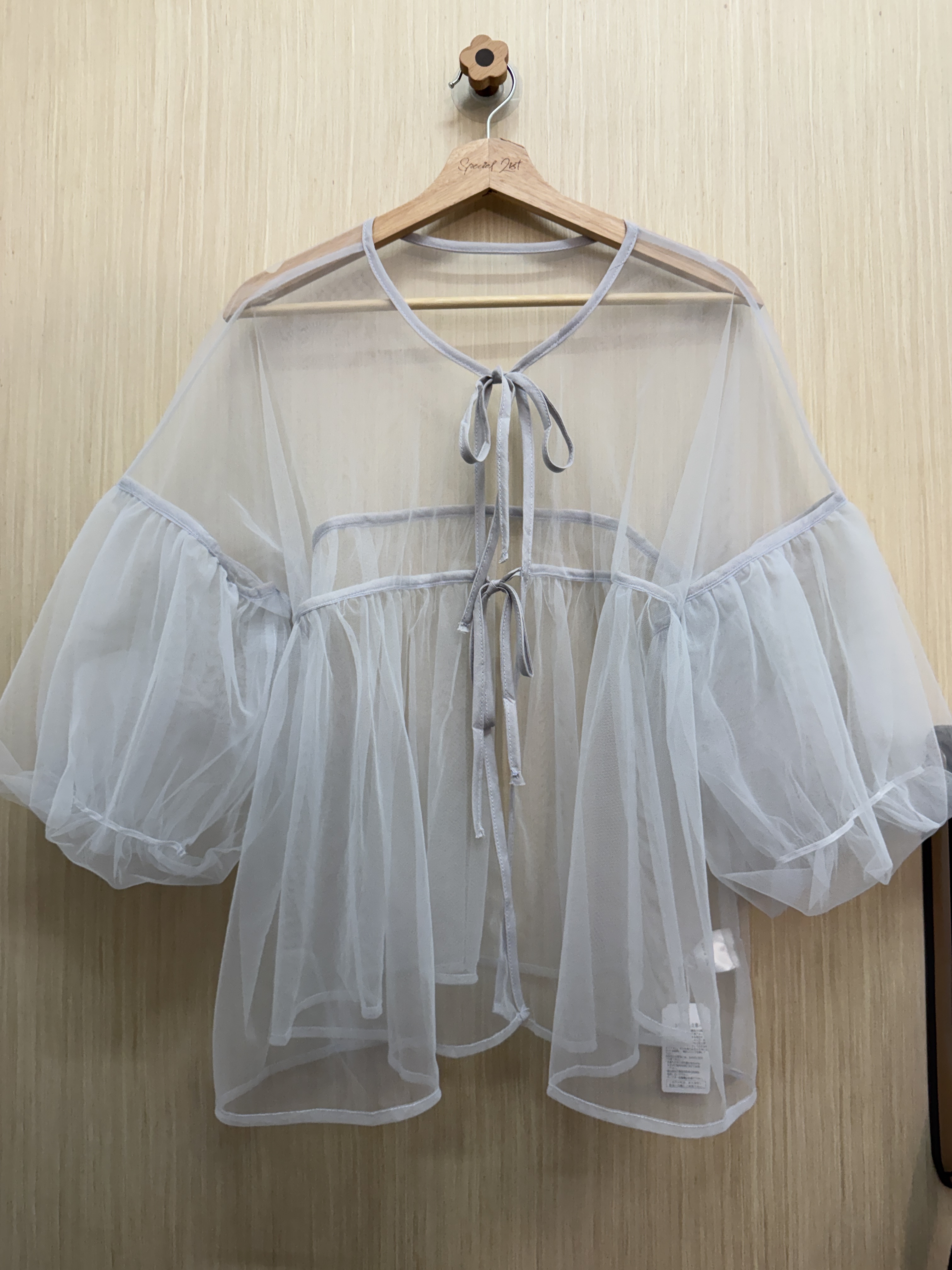 🔖 【泡泡袖透紗外套】 ✦顏色:淺灰 ✦𝐒𝐢𝐳𝐞:胸圍𝟒𝟕″吋 衣長𝟔𝟐𝐜𝐦