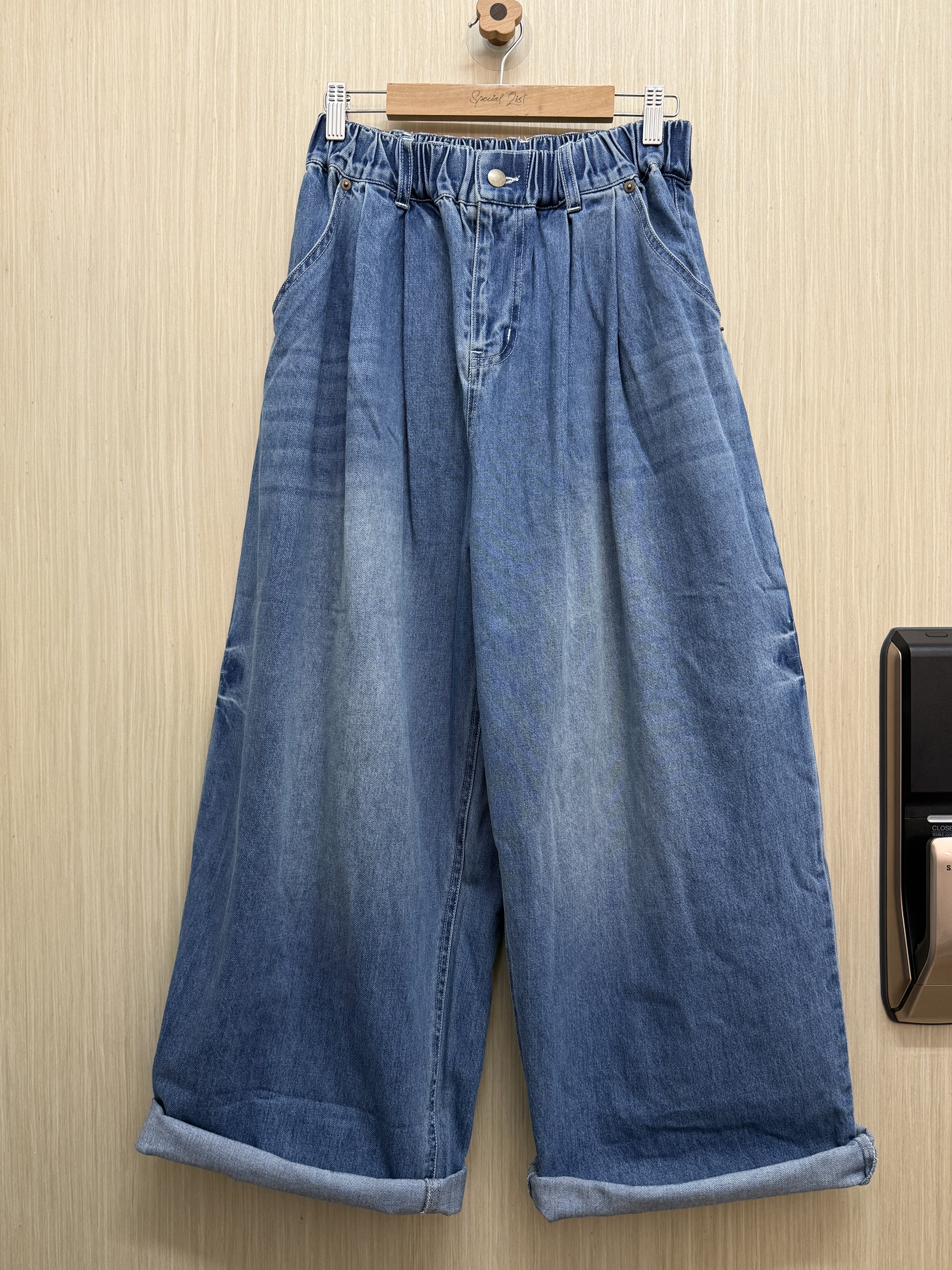 🔖 【洗水牛仔直筒褲】 ✦顏色:淺牛仔藍 ✦𝐒𝐢𝐳𝐞:全橡筋腰圍&有褲袋&束腰帶.ᐟ.ᐟ 腰圍𝟐𝟒″-𝟑𝟖″吋 𝐡𝐢𝐩圍𝟓𝟗“吋 褲長𝟏𝟎𝟏𝐜𝐦