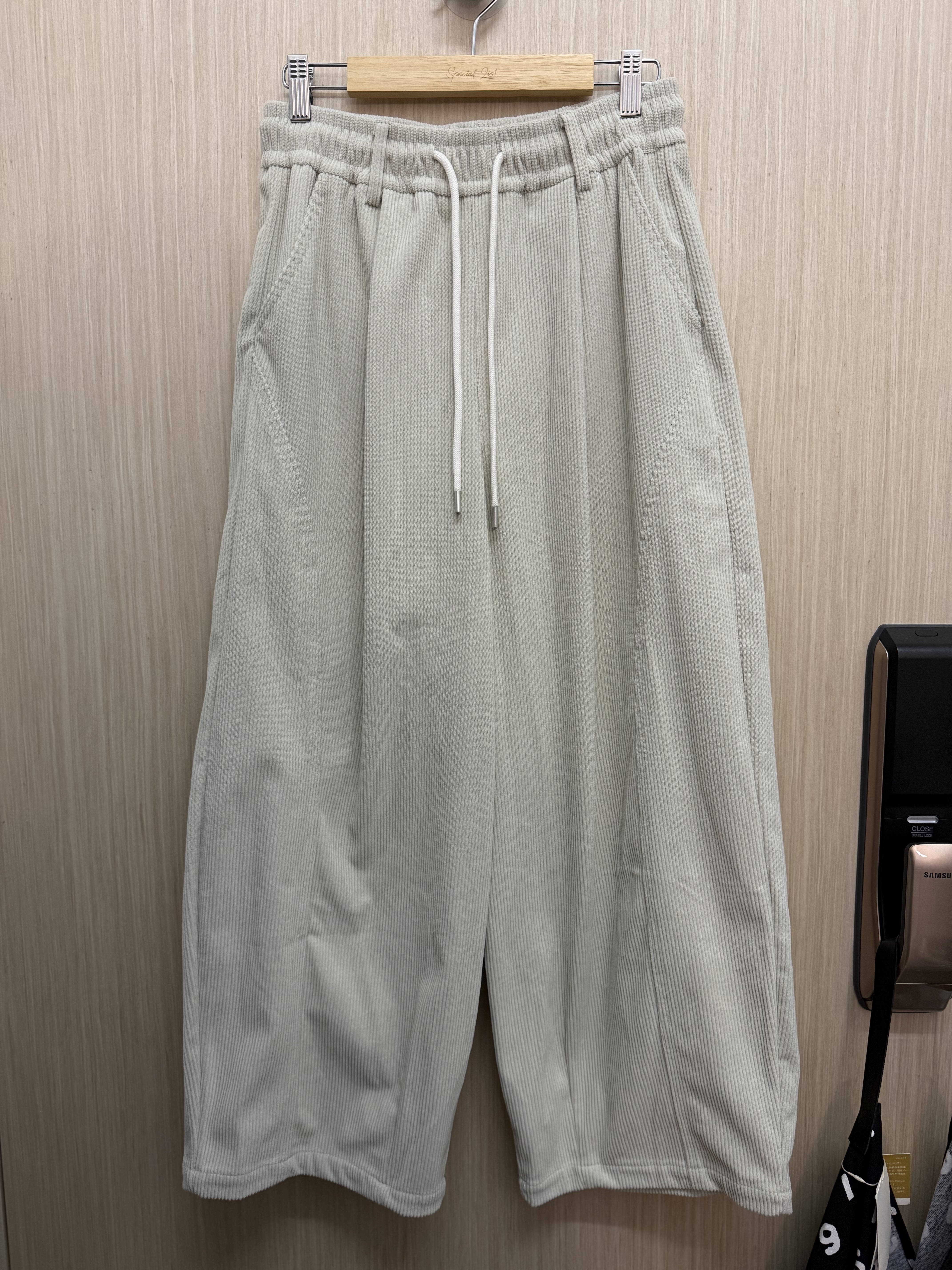 🔖 【燈芯絨繭型修腳褲】 ✦顏色:杏色 ✦𝐒𝐢𝐳𝐞:全橡筋腰圍&束腰帶.ᐟ.ᐟ 腰圍𝟐𝟐-𝟒𝟎“吋 𝐡𝐢𝐩圍𝟓𝟓“吋 褲長𝟗𝟑𝐜𝐦