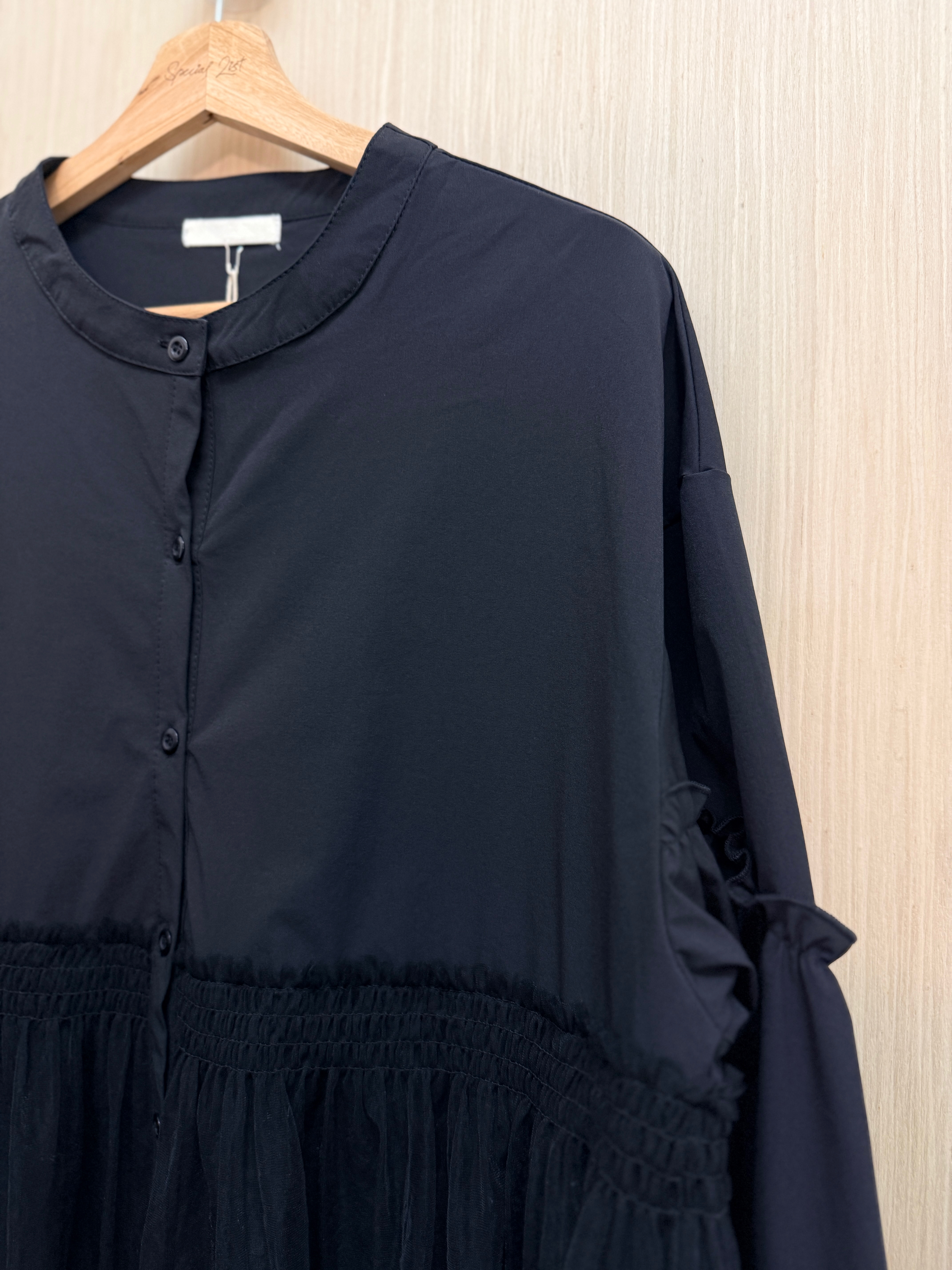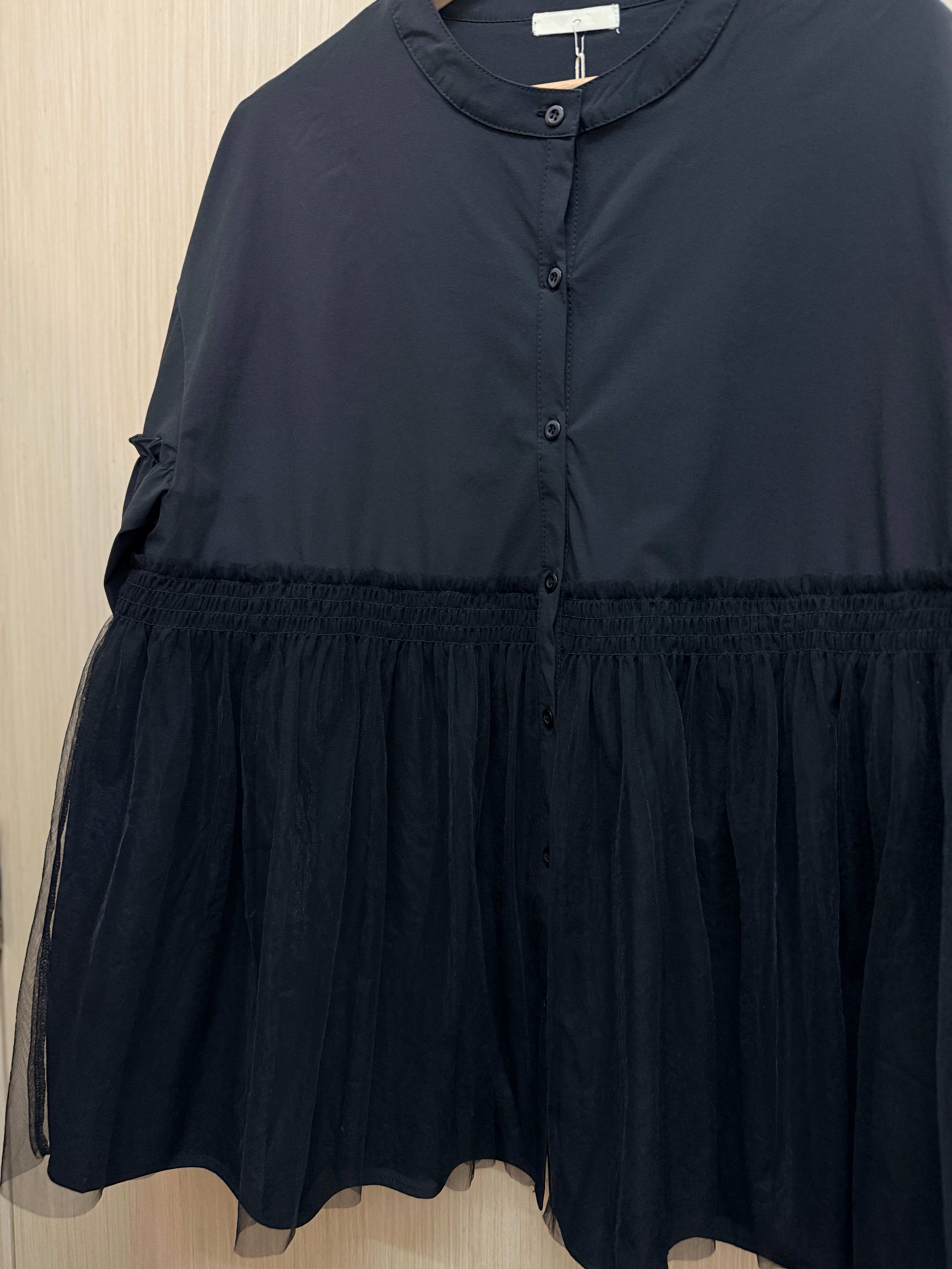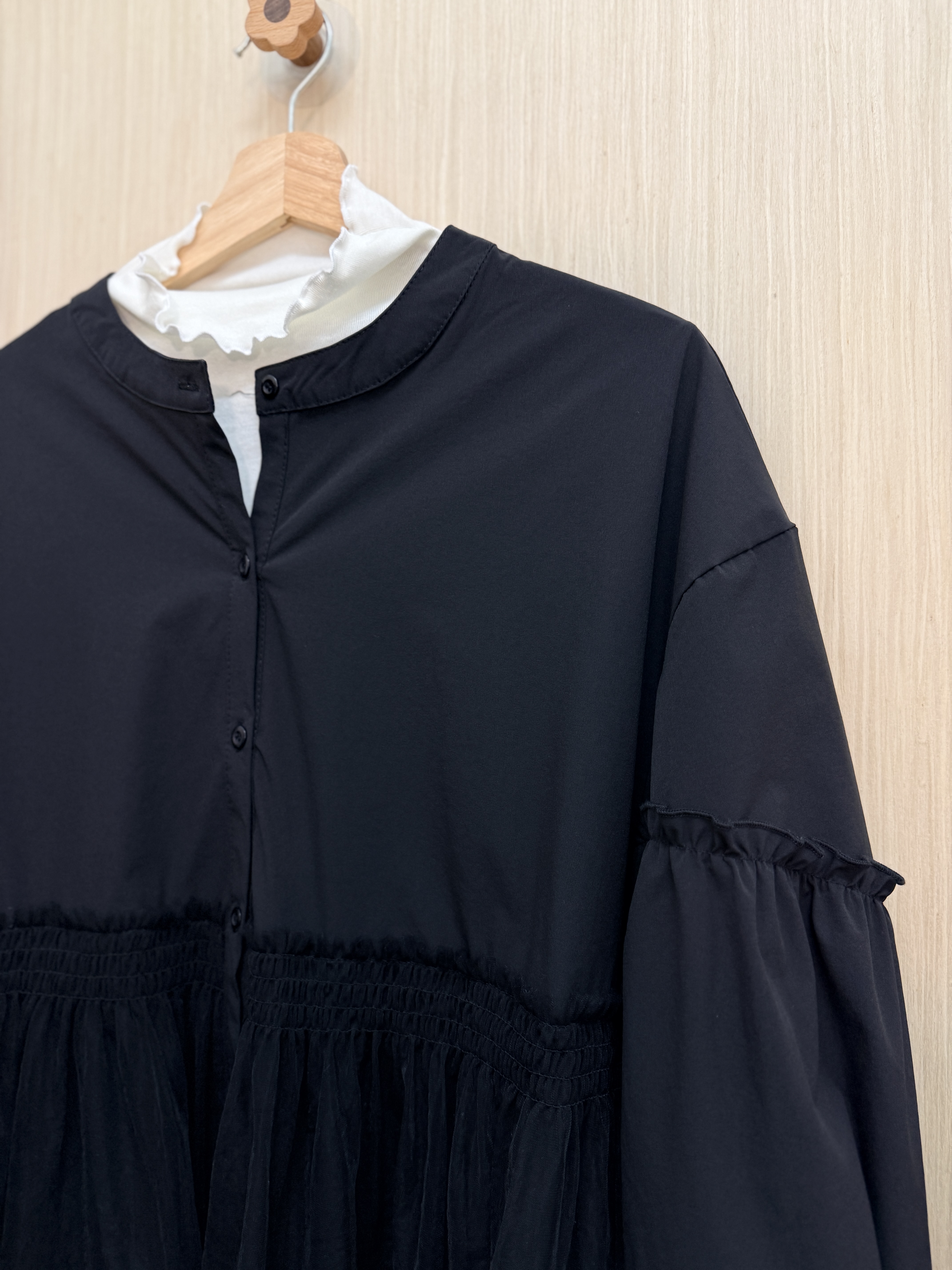 🔖 【索索料拼紗恤衫】 ✦顏色:黑色 ✦𝐒𝐢𝐳𝐞:肩闊𝟒𝟓𝐜𝐦 胸圍𝟒𝟔“吋 袖長𝟒𝟖𝐜𝐦 衣長𝟕𝟑𝐜𝐦