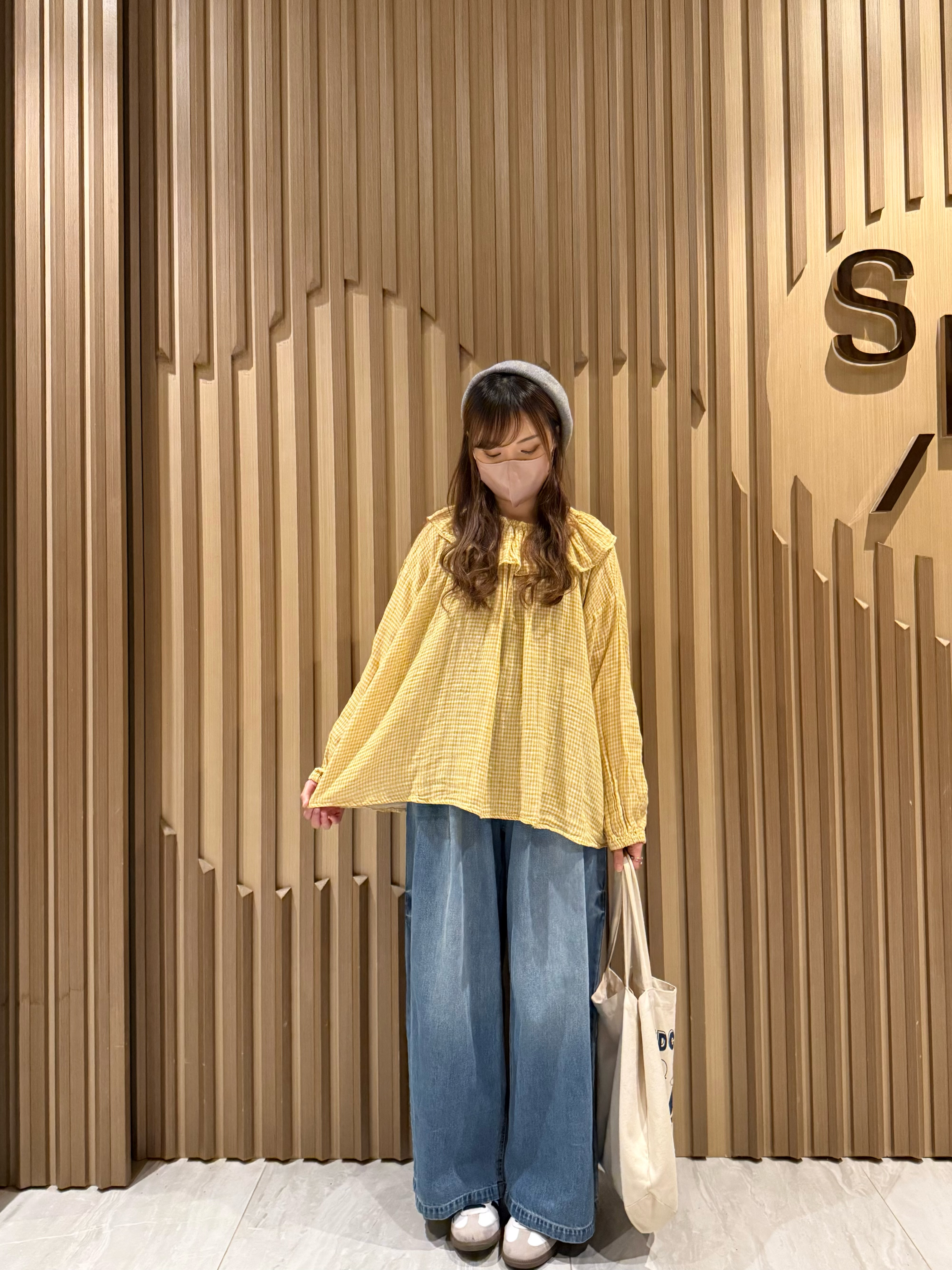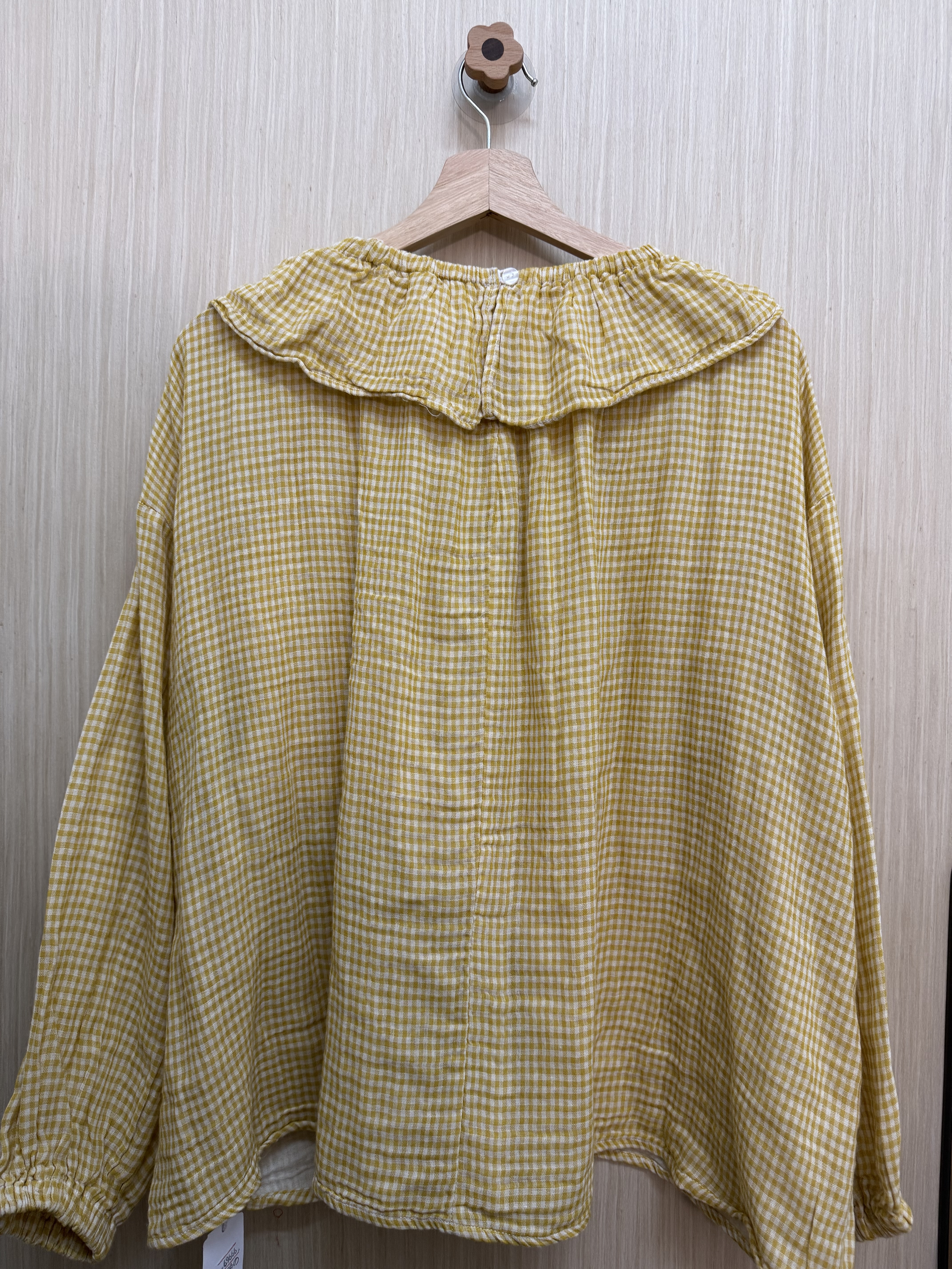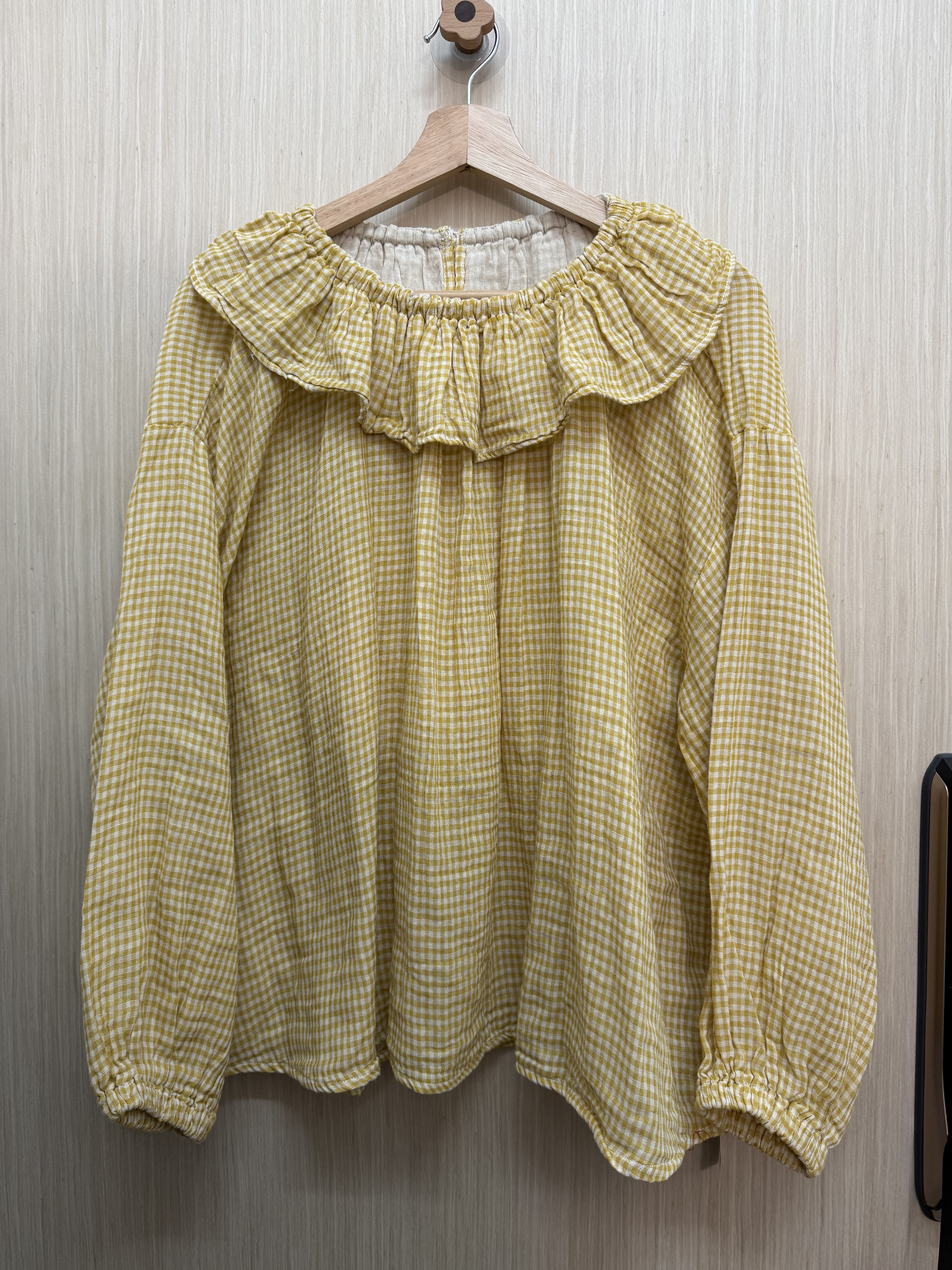 細格荷葉領棉紗𝐭𝐨𝐩(黃𝐱白)