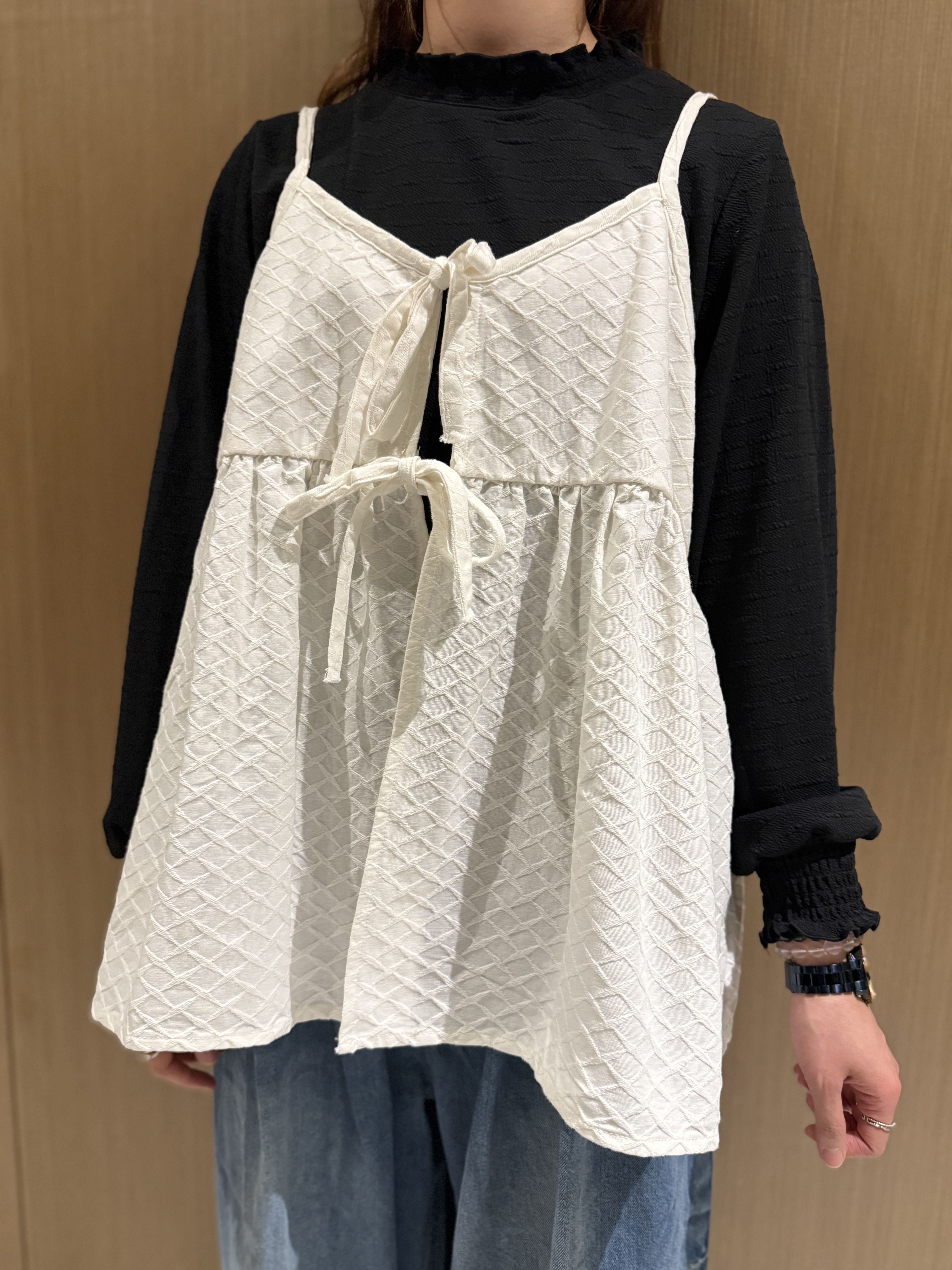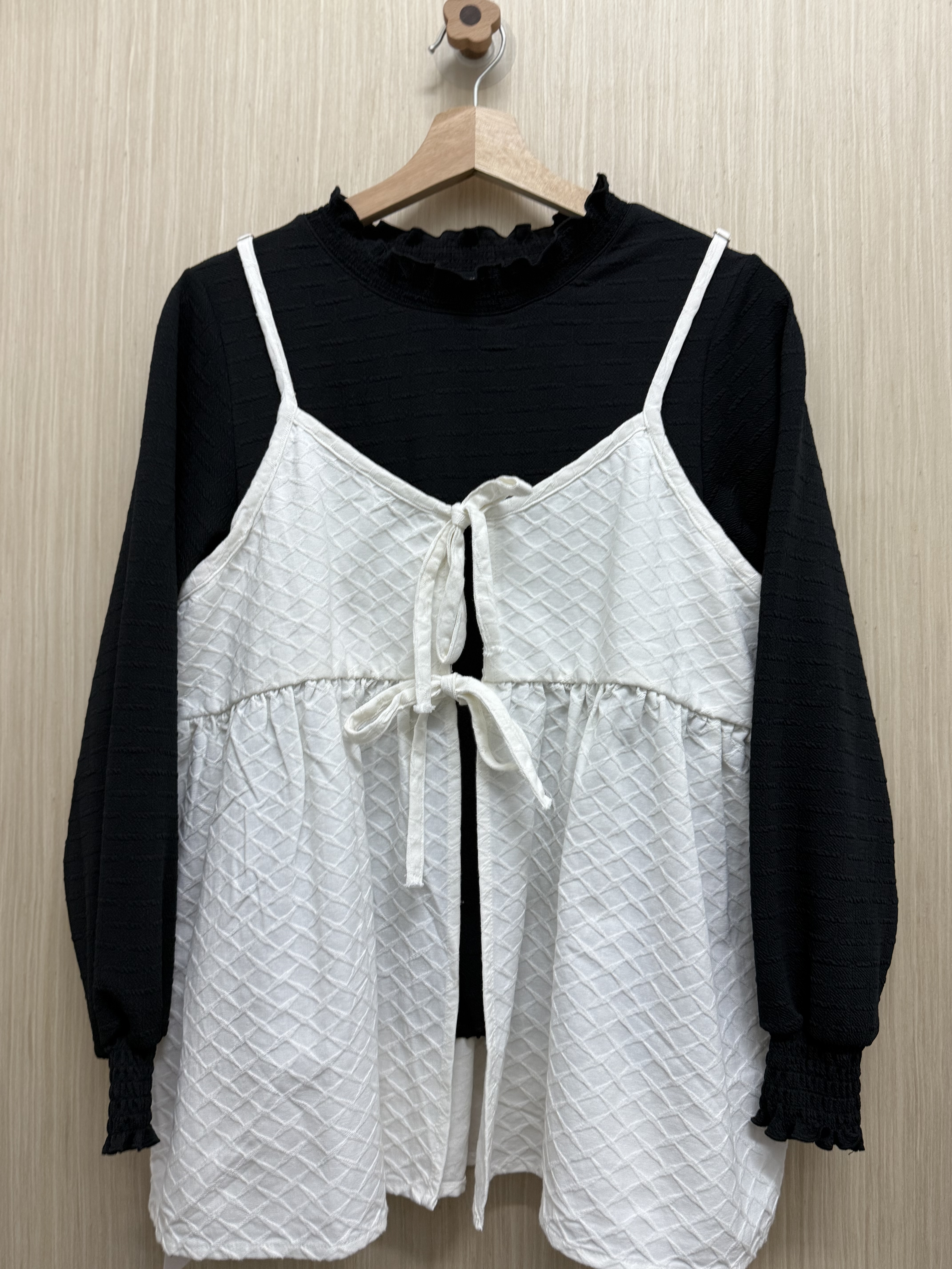 🔖 【菱格紋綁結吊帶】 ✦顏色:白色 ✦𝐒𝐢𝐳𝐞:𝐅𝐫𝐞𝐞 𝐬𝐢𝐳𝐞*ˊᵕˋ)੭