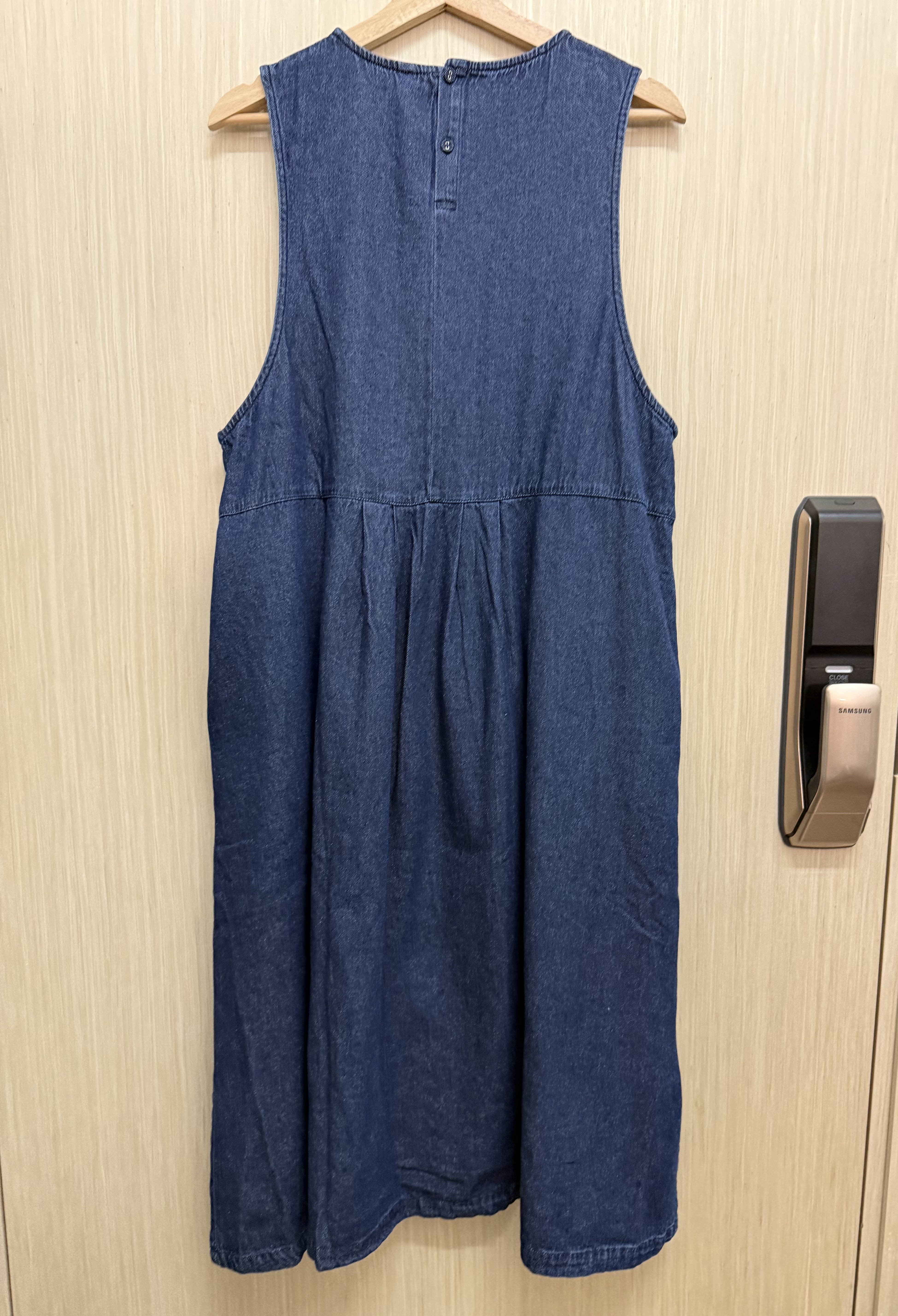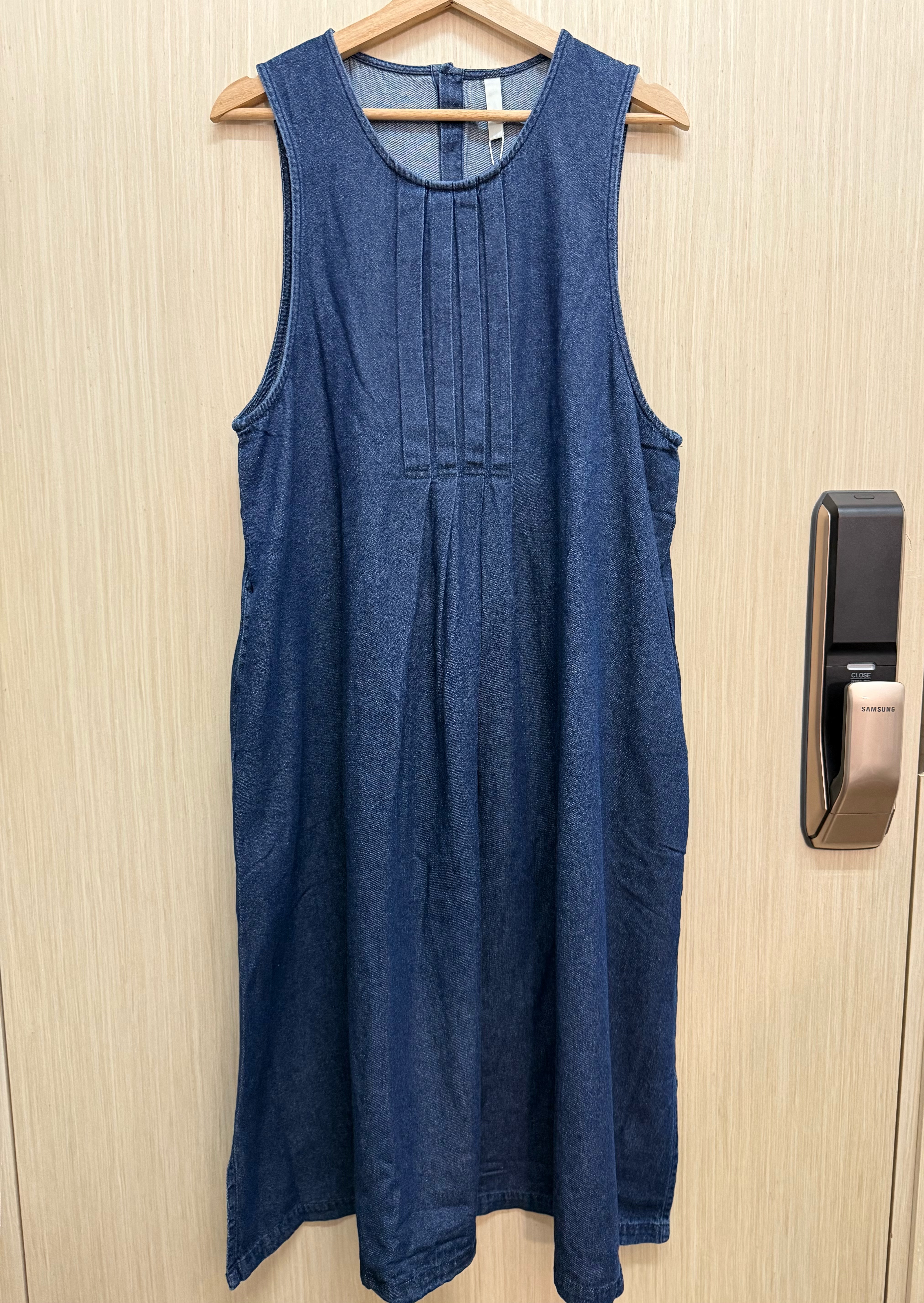 🔖 【風琴褶牛仔背心𝐎𝐏𝐒】 ✦顏色:牛仔藍 ✦𝐒𝐢𝐳𝐞:肩闊𝟑𝟒𝐜𝐦 胸圍𝟒𝟏“吋 腰圍𝟒𝟒“吋 裙長𝟏𝟏𝟓𝐜𝐦